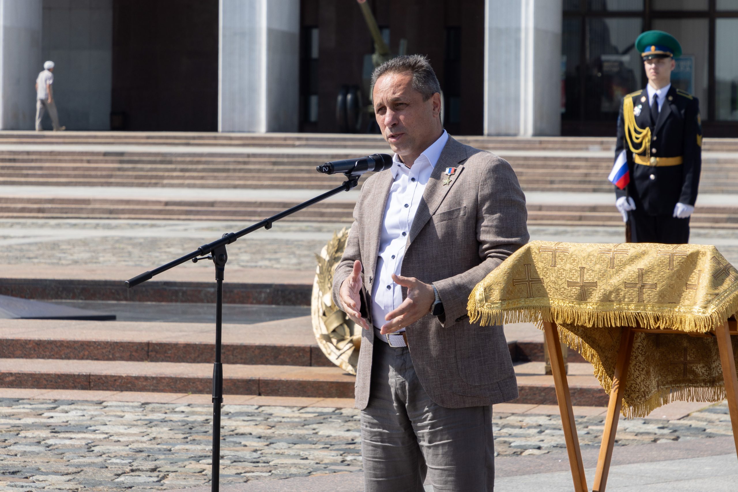 «Уважаемые организаторы этого знакового бронепробега «Дорога мужества», нам выпала огромная честь участвовать в этом мероприятии. И в дорогу, в путь мы отправляем святыню икону-объединительницу «Собор Небесных Покровителей Лавр Святой Руси», — обратился к участникам бронепробега директор международного центра развития социально значимых проектов «Святые лавры Руси православной» Владимир Березовский.