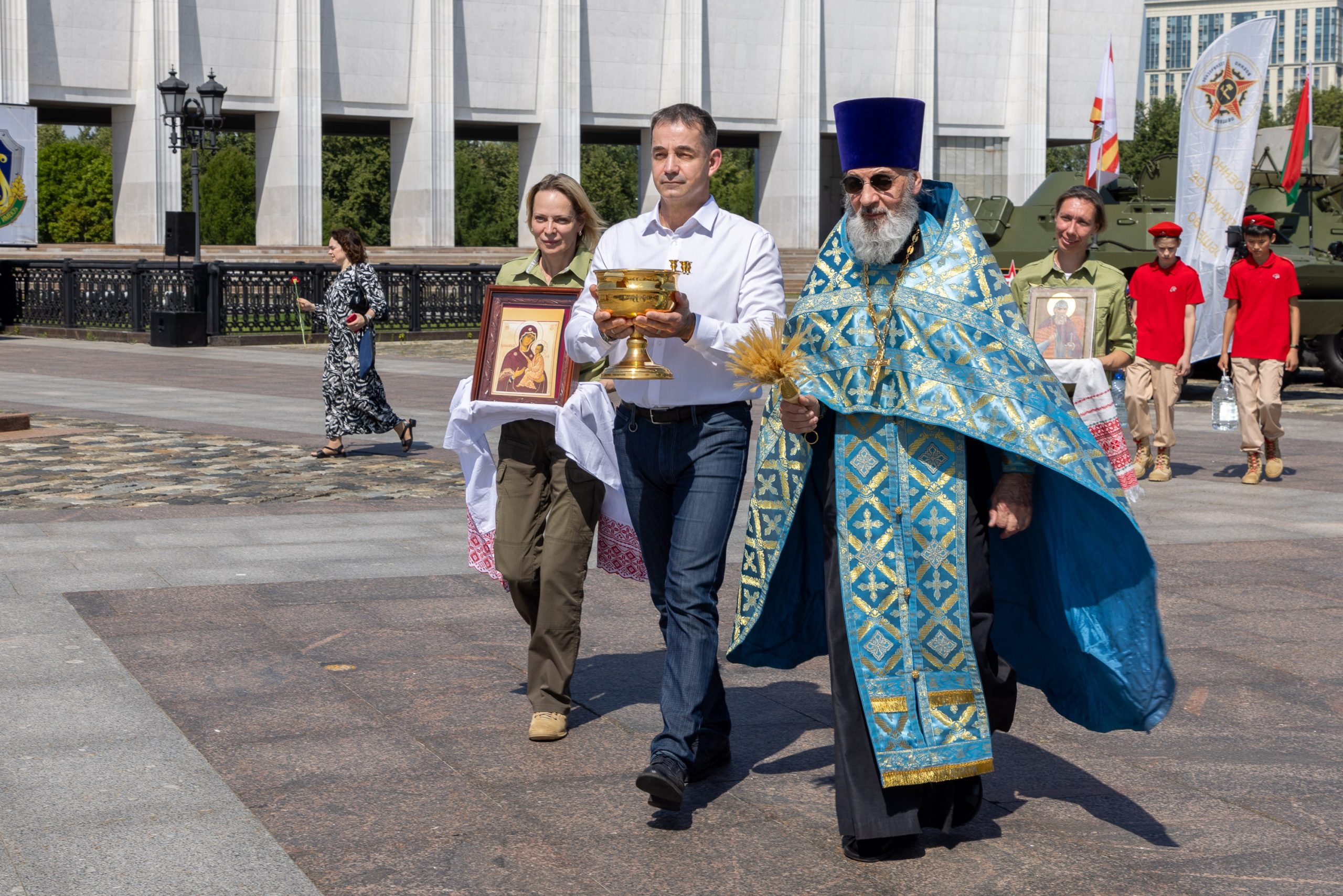 «Эта икона 168 суток находилась в космосе. На борт ее брали наши космонавты Герой РФ Александр Несуркин и член попечительского совета Герой РФ, летчик-космонавт Антон Шкаплеров. Эта икона пройдет по Белоруссии, и в городах, где будут остановки бронепробега, будут переданы копии этой иконы. Я желаю вам доброго пути», — добавил он.