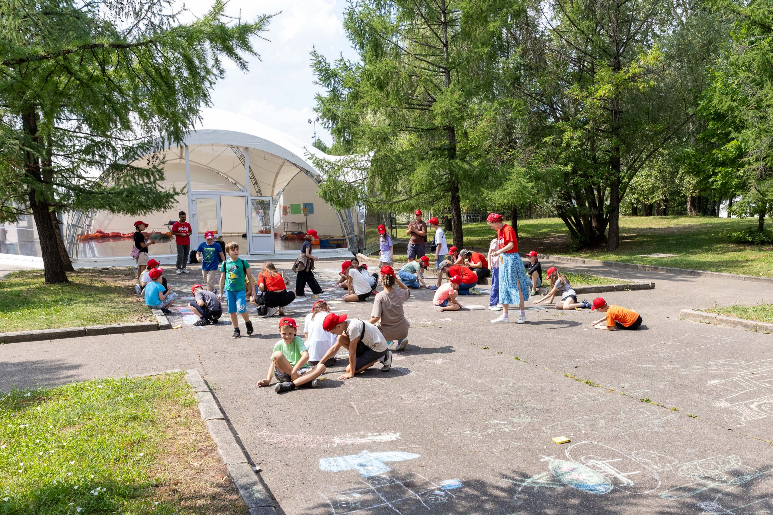 Воспитанники детского городского клуба «Лето Побед» при Музее Победы присоединились к празднованию Дня рисунков на асфальте и создали оригинальные красочные произведения, объединенные темой «Мое лето в Музее Победы»