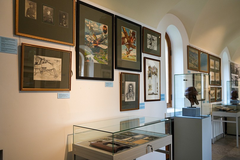 В числе экспонатов — масштабные модели и проектные чертежи самолетов, боеприпасы, авиационные пулеметы, обмундирование, личное оружие авиаторов. О подвигах и судьбах российских авиаторов после окончания Первой мировой рассказывают документы, фотографии, предметы живописи и графики, мемориальные вещи и артефакты.