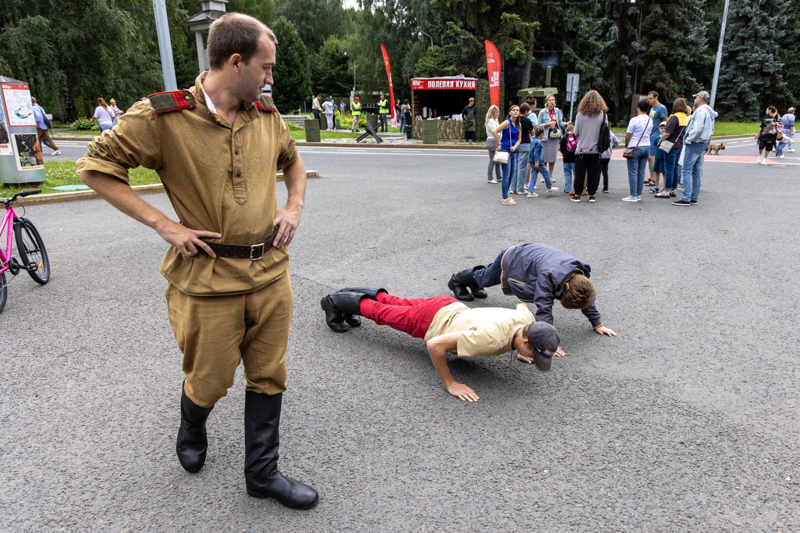 Всего около Музея Победы работают более 70 интерактивных площадок с элементами исторической реконструкции, воссоздающих атмосферу 1940-х годов. В тематических локациях взрослые и маленькие гости могут присоединиться к спортивной эстафете, пройти «Курс молодого бойца», обучиться основам туристической подготовки и многое другое. В программе мероприятий — концерты патриотической песни, мастер-классы, хореографические и музыкальные занятия, пешие и автобусные экскурсии по мемориальному комплексу на Поклонной горе. А после успешного выполнения квеста и занесения пройденных локаций в «Красноармейскую книжку» можно получить призы и подарки.