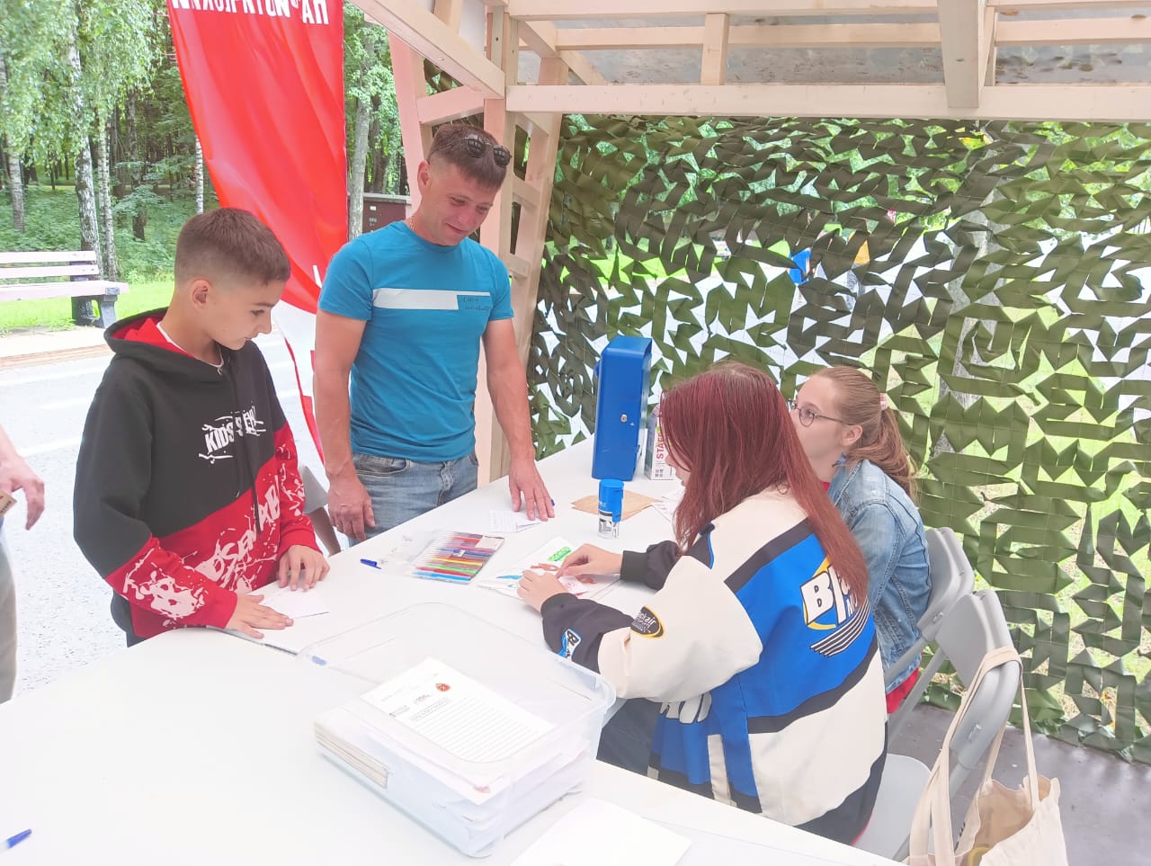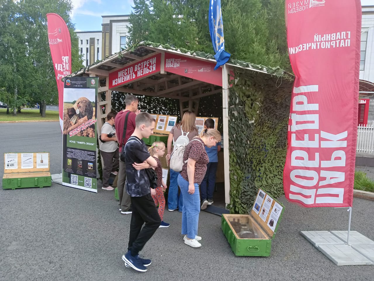 Взяв стилизованную красноармейскую книжку, юные гости и их родители становились участниками квеста и получали печати за выполнение заданий на различных тематических локациях. Самых активных ждали пилотки, солдатская каша и билеты в Музей Победы.
