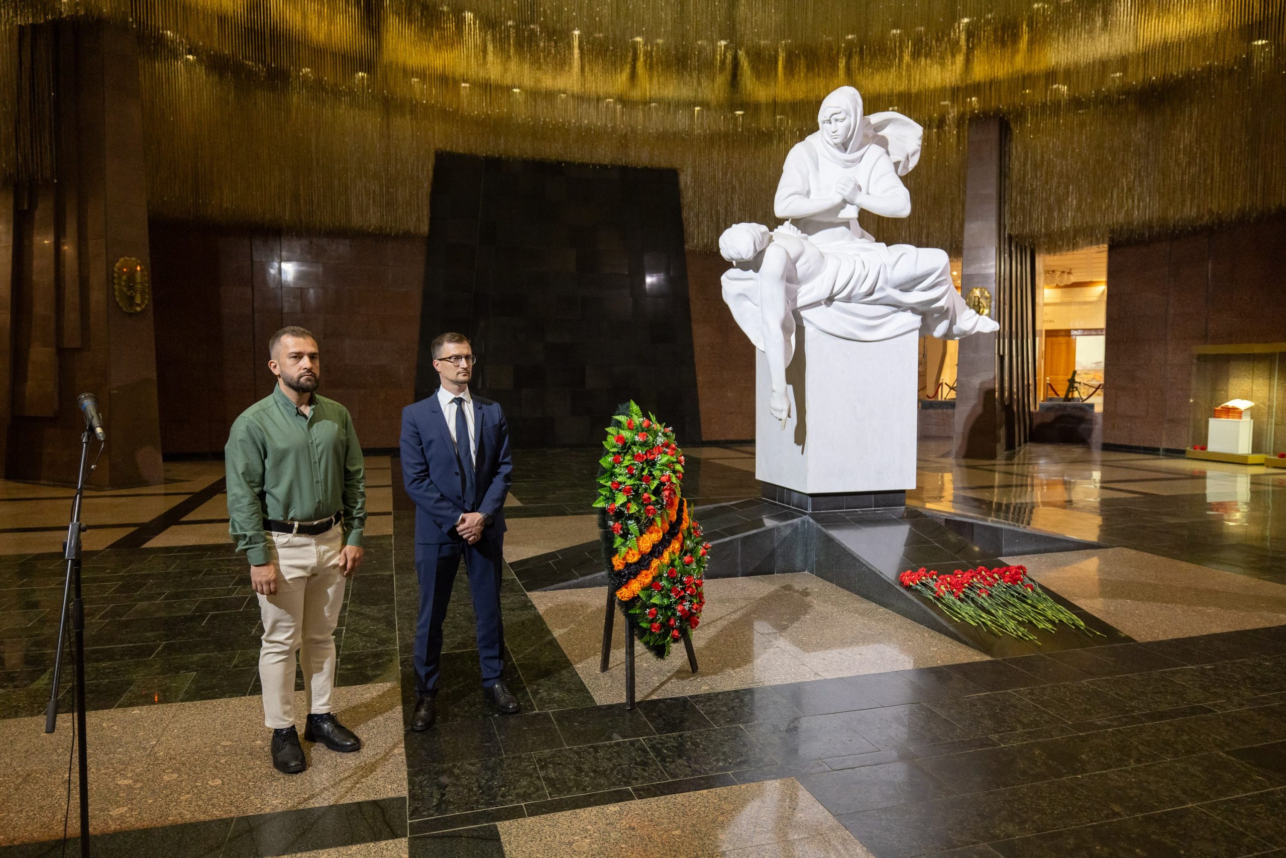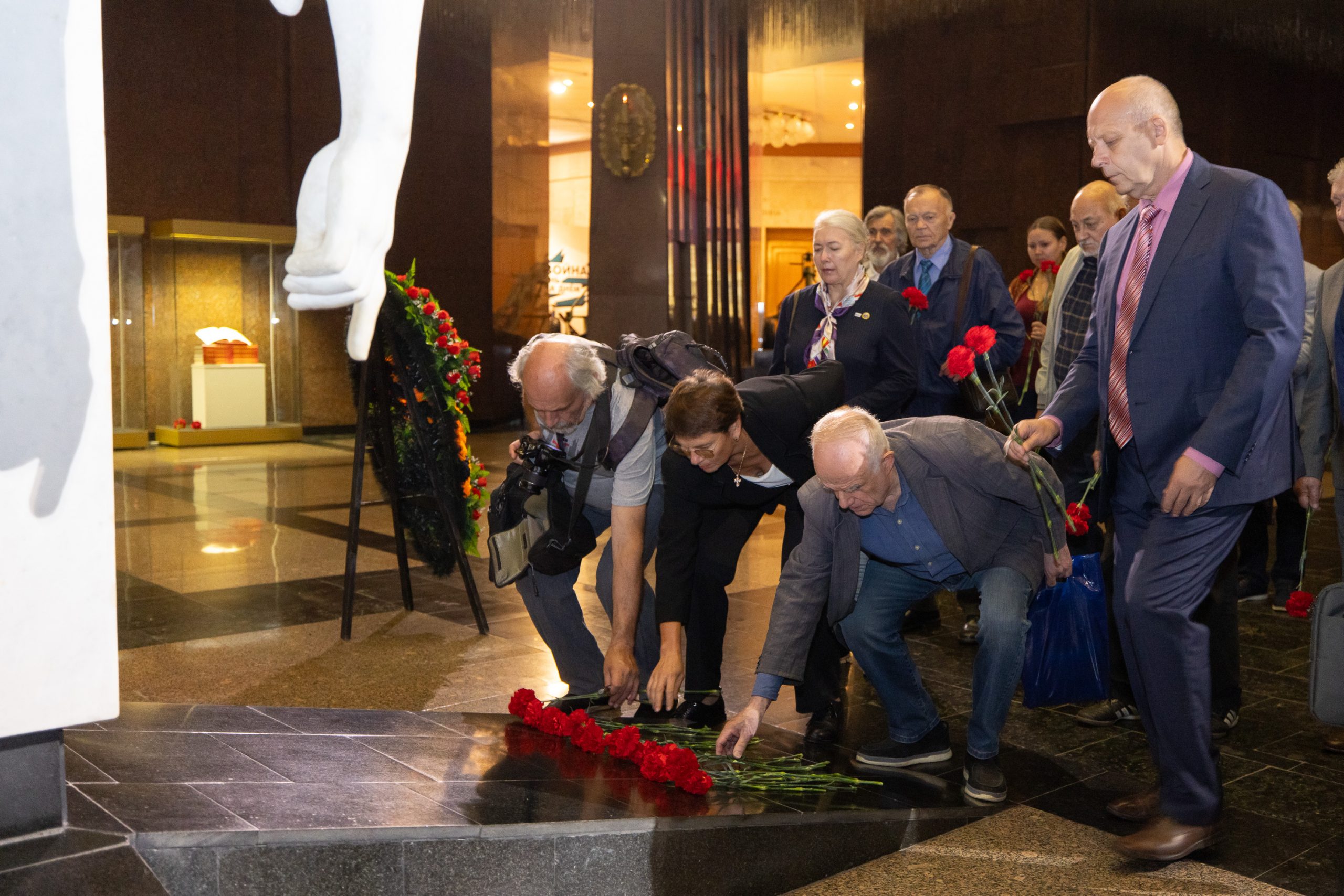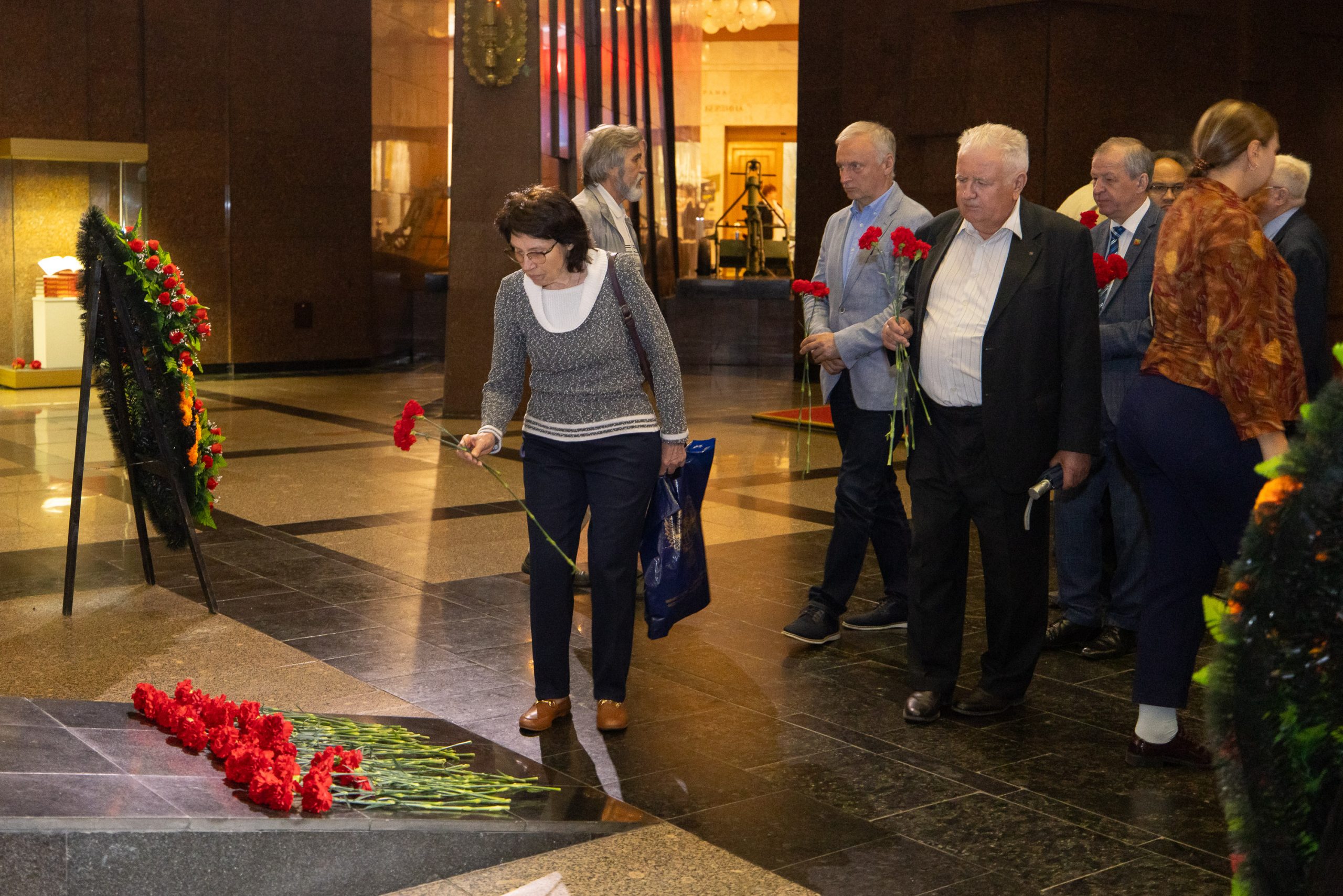 Кроме этого, участники церемонии возложили цветы в Зале Памяти и Скорби и почтили минутой молчания память погибших при защите Родины в годы Великой Отечественной войны.