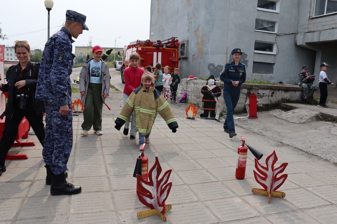 Начальник инспекции пожарной безопасности Управления Росгвардии по Магаданской области капитан Роман Сухабердин вместе с коллегами из МЧС напомнили подросткам номера экстренных служб, рассказали, как действовать при пожаре и чем можно потушить огонь.