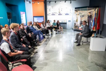 Во встрече приняли участие свыше 20 школьников Приморского края. Ребята поделились итогами участия в смене «Школьный музей Победы», которая прошла во Всероссийском детском центре «Океан», рассказали об уникальных экспонатах, хранящихся в их школьных музеях, и смогли задать вопросы Александру Школьнику.