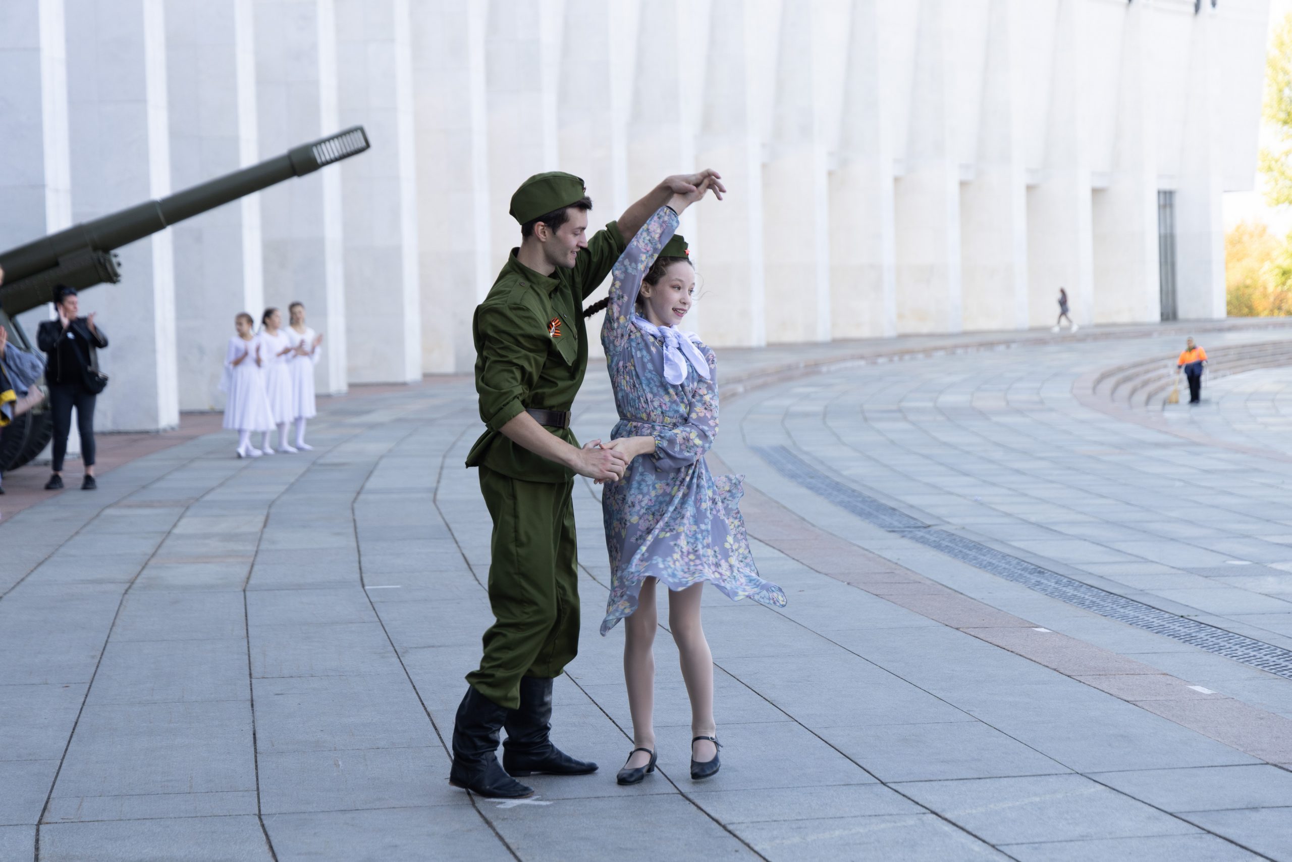 В этот раз участниками музыкальной программы в колоннаде Музея Победы стали представители театра танца «Волшебный мир» и певец Марк Мазепа, заслуженная артистка России Варвара, а также ансамбль русской песни «Бабкины внуки». Участники последнего не только выступили перед гостями музея, но и побывали на экскурсии по уникальной иммерсивной экспозиции «Подвиг Народа».