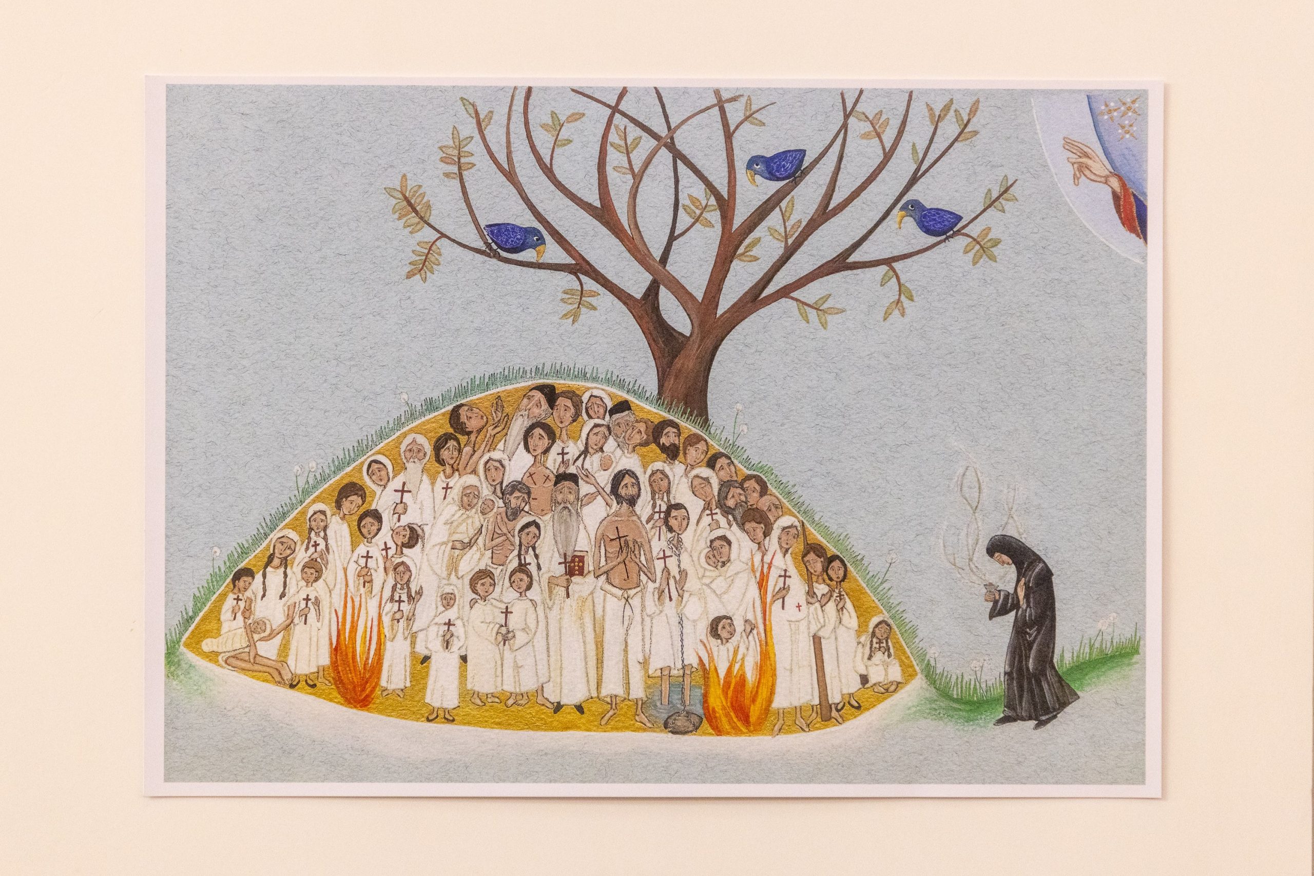 По словам монахини, ее работы были созданы как средство молитвенного поминовения невинных жертв мученичества, прежде всего детей. Свои работы она создает по благословению епископа Пакрацко-Славонского Иоанна. Выставка уже была представлена во многих странах мира.