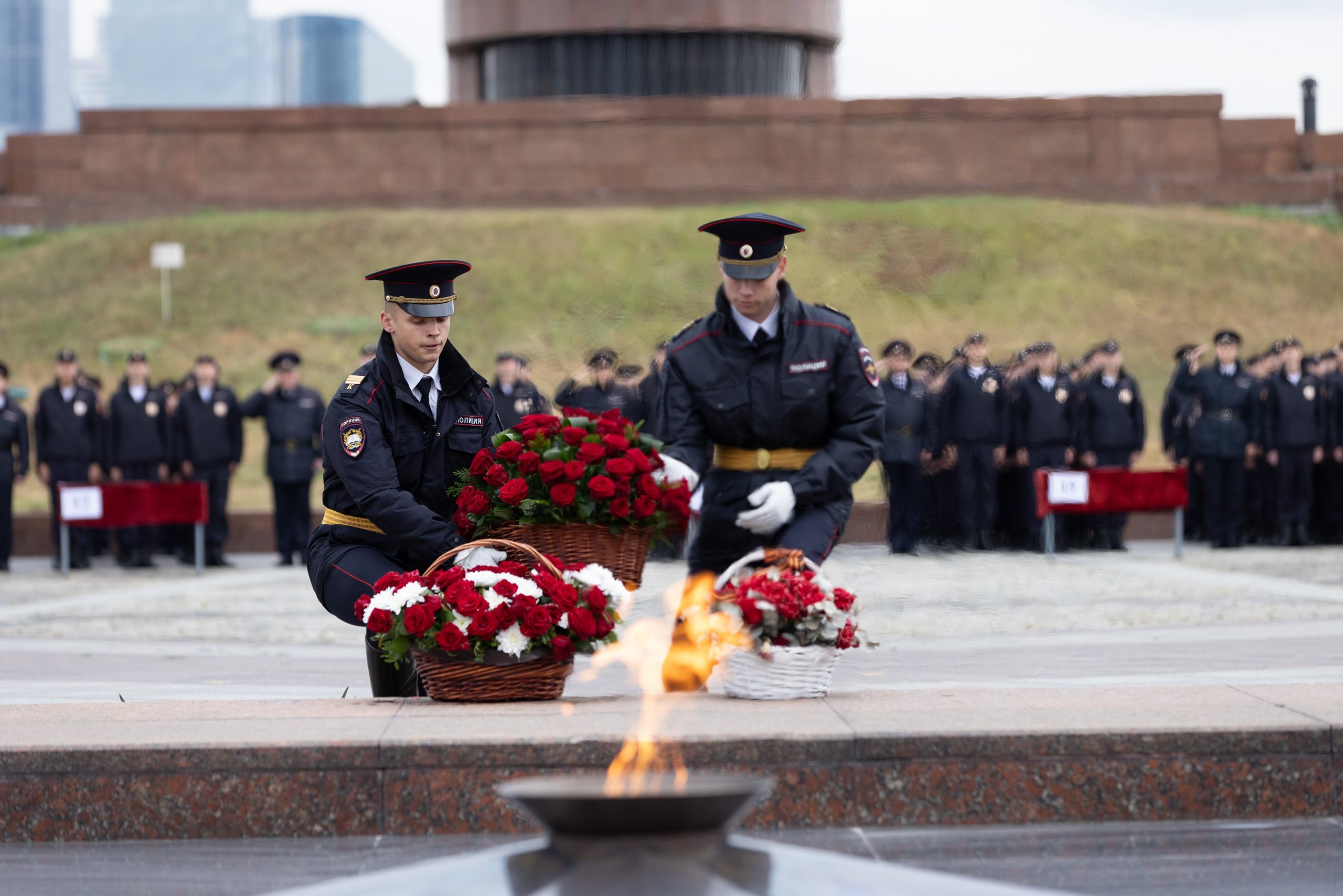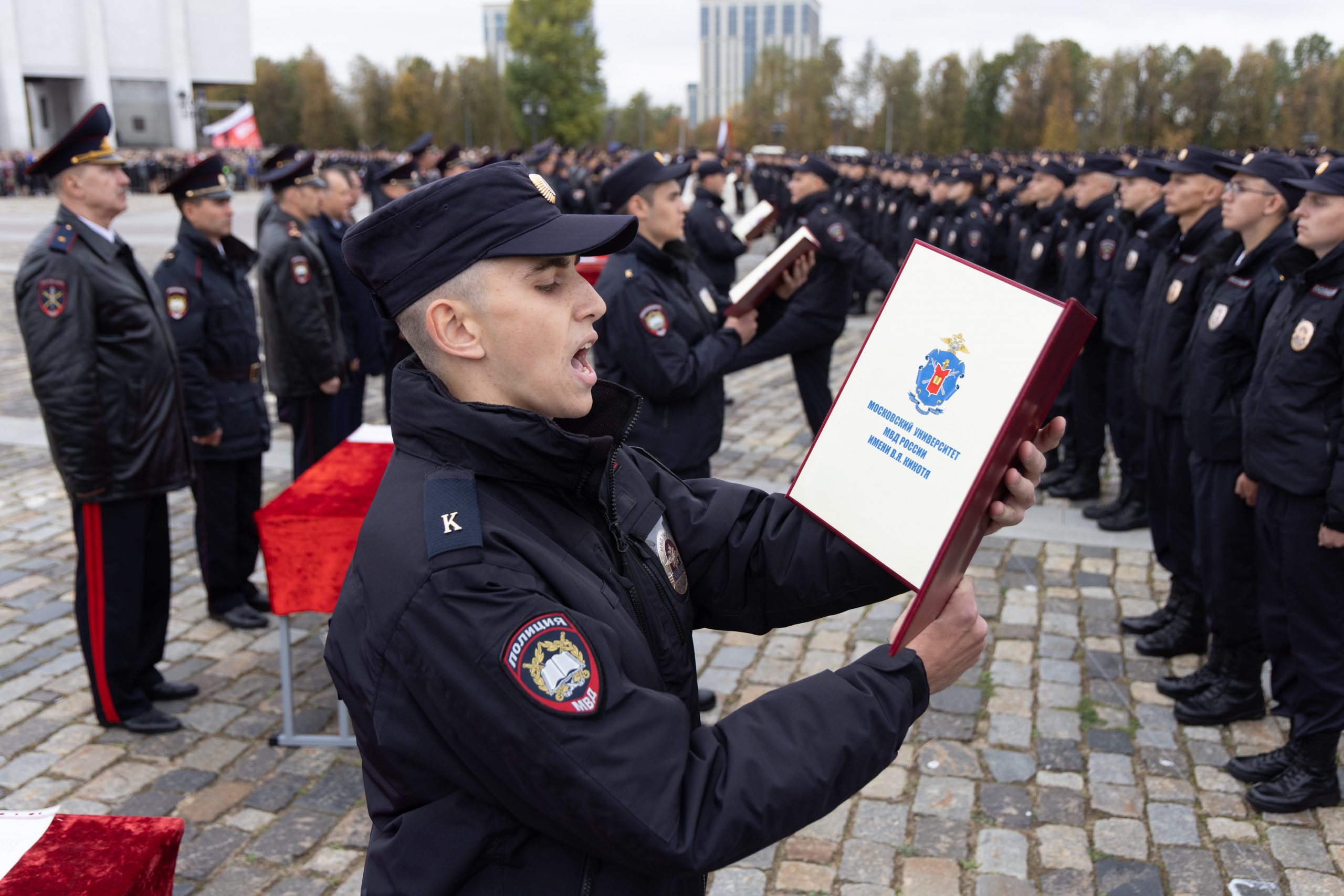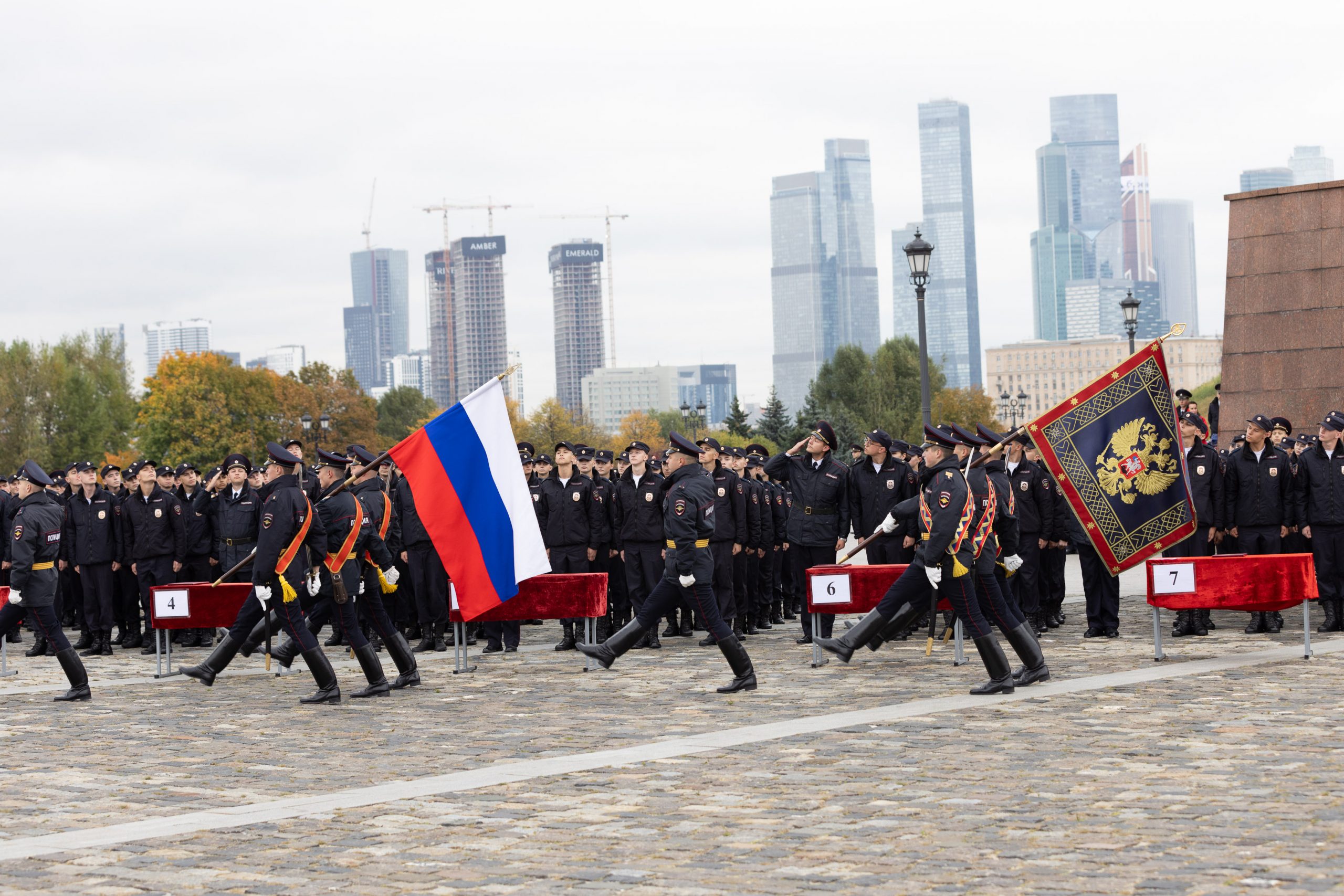 Первокурсники Московского университета МВД имени Кикотя приняли присягу. Торжественная церемония состоялась у стен Музея Победы. За тем, как она проходит и принимают присягу будущие офицеры полиции, наблюдали их родственники и друзья, а также посетители культурной площадки.