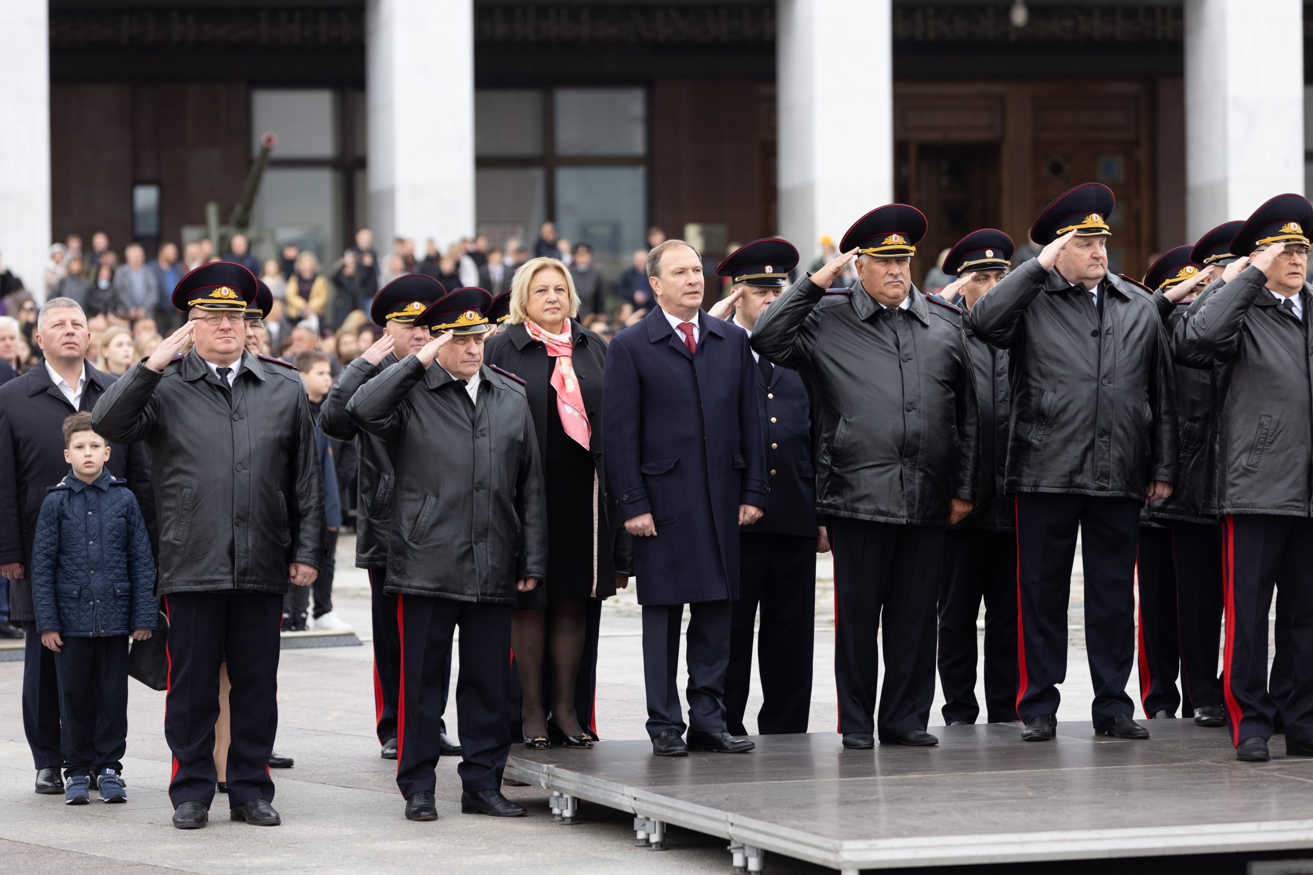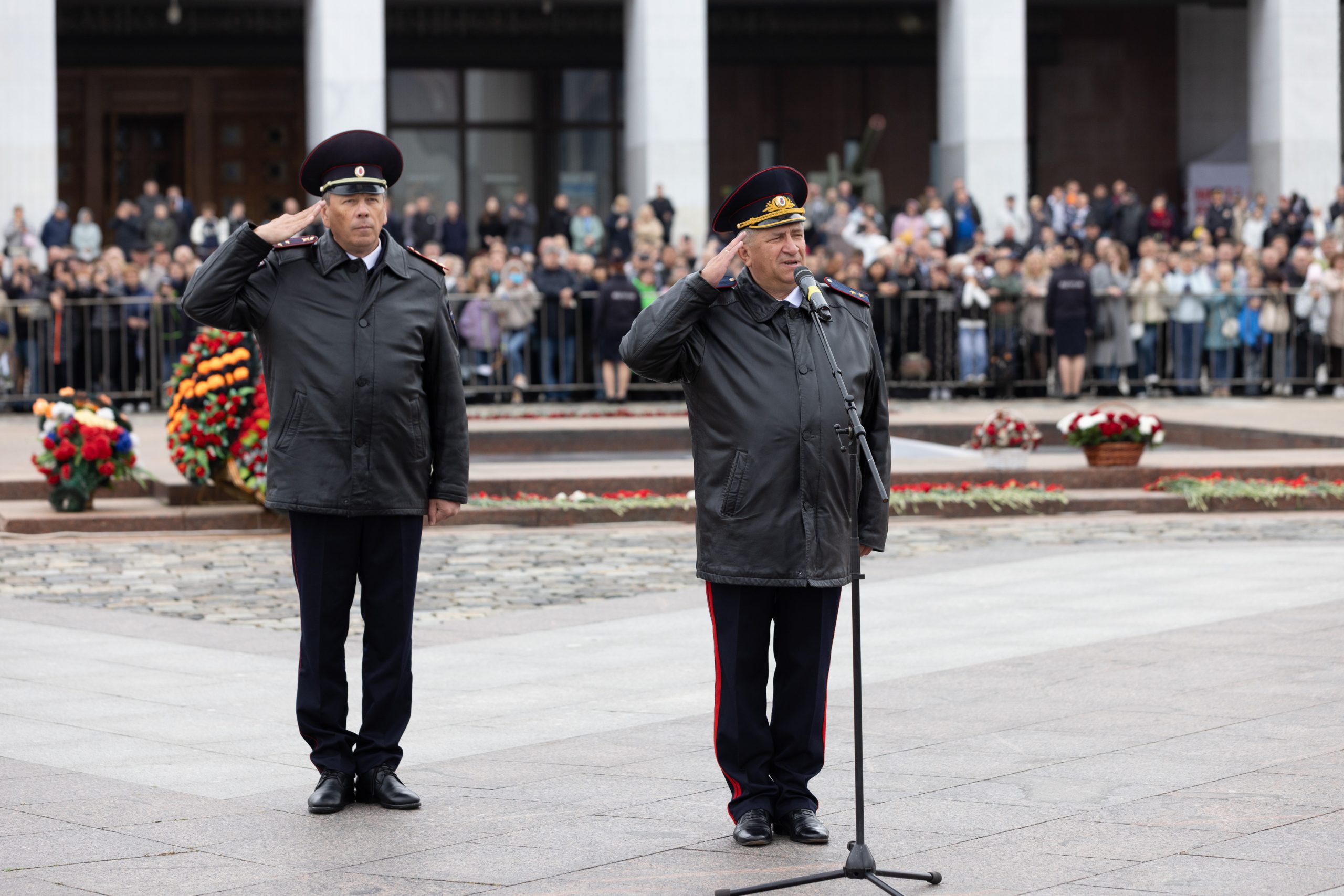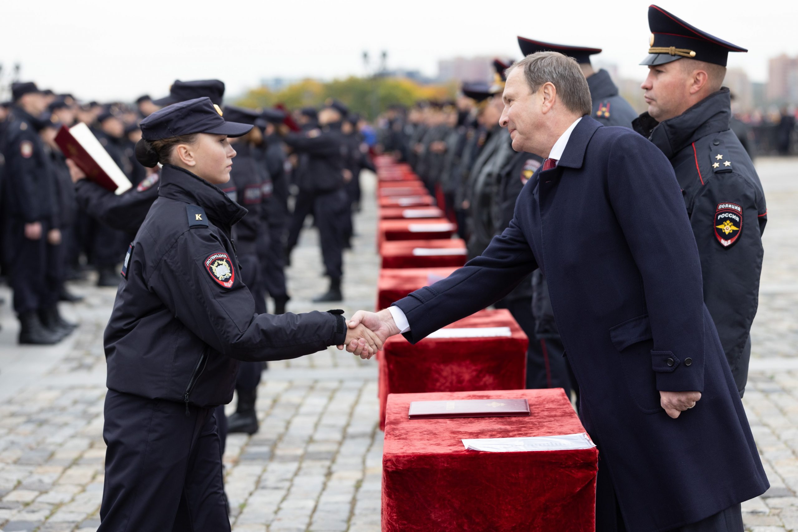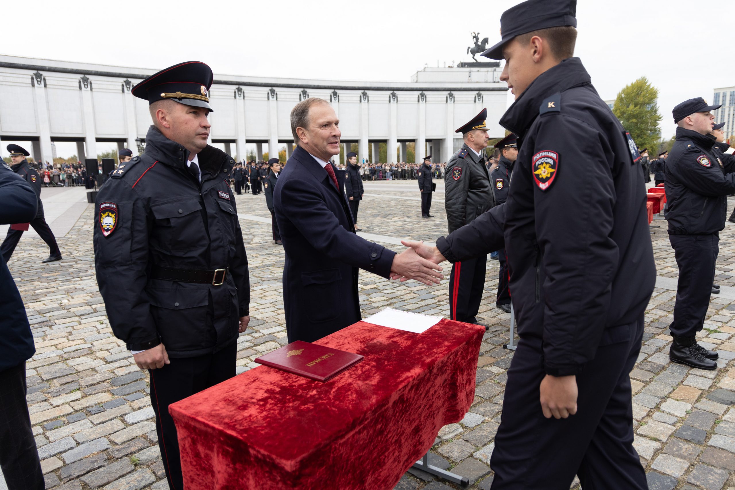 Первокурсники Московского университета МВД имени Кикотя приняли присягу. Торжественная церемония состоялась у стен Музея Победы. За тем, как она проходит и принимают присягу будущие офицеры полиции, наблюдали их родственники и друзья, а также посетители культурной площадки.
