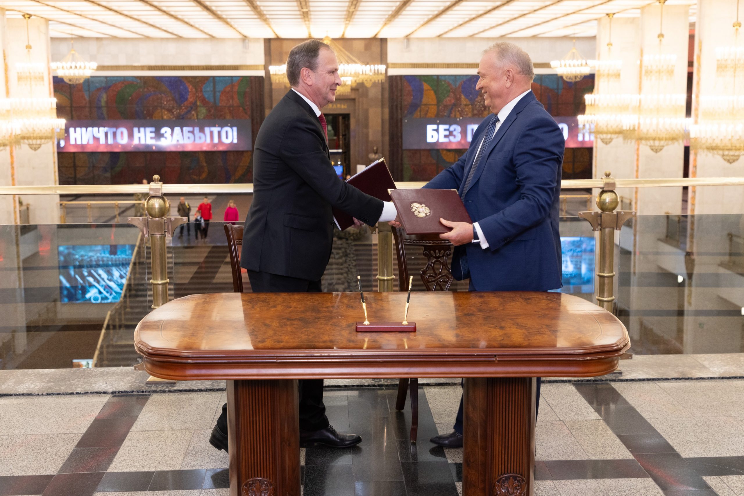 Торжественное подписание Соглашения о сотрудничестве состоялось в Музее Победы. По окончании церемонии у делегации Торгово-промышленной палаты России была возможность найти своих родственников во Всенародном историческом депозитарии «Лица Победы», а также посетить уникальную иммерсивную экспозицию «Подвиг Народа».