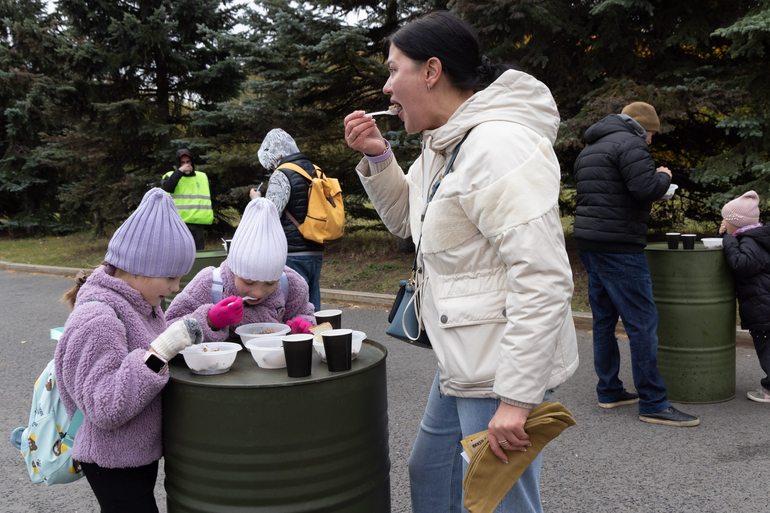 «Я с сыном уже раз в пятнадцатый сюда приезжаю. И каждый раз он вновь просит привезти его сюда. Мы уже кучу призов выиграли, побывали на экскурсиях в Музее Победы благодаря прохождению квеста «Красноармейская книжка». И сегодня он с утра уговорил. Я думала, очень холодно, но как-то увлеклись и даже не обращали внимания на погоду. Еще попили чай горячий и кашу всю съели солдатскую! Сын рад, и я радуюсь вместе с ним», — отметила посетитель парка Ольга Стародубова.