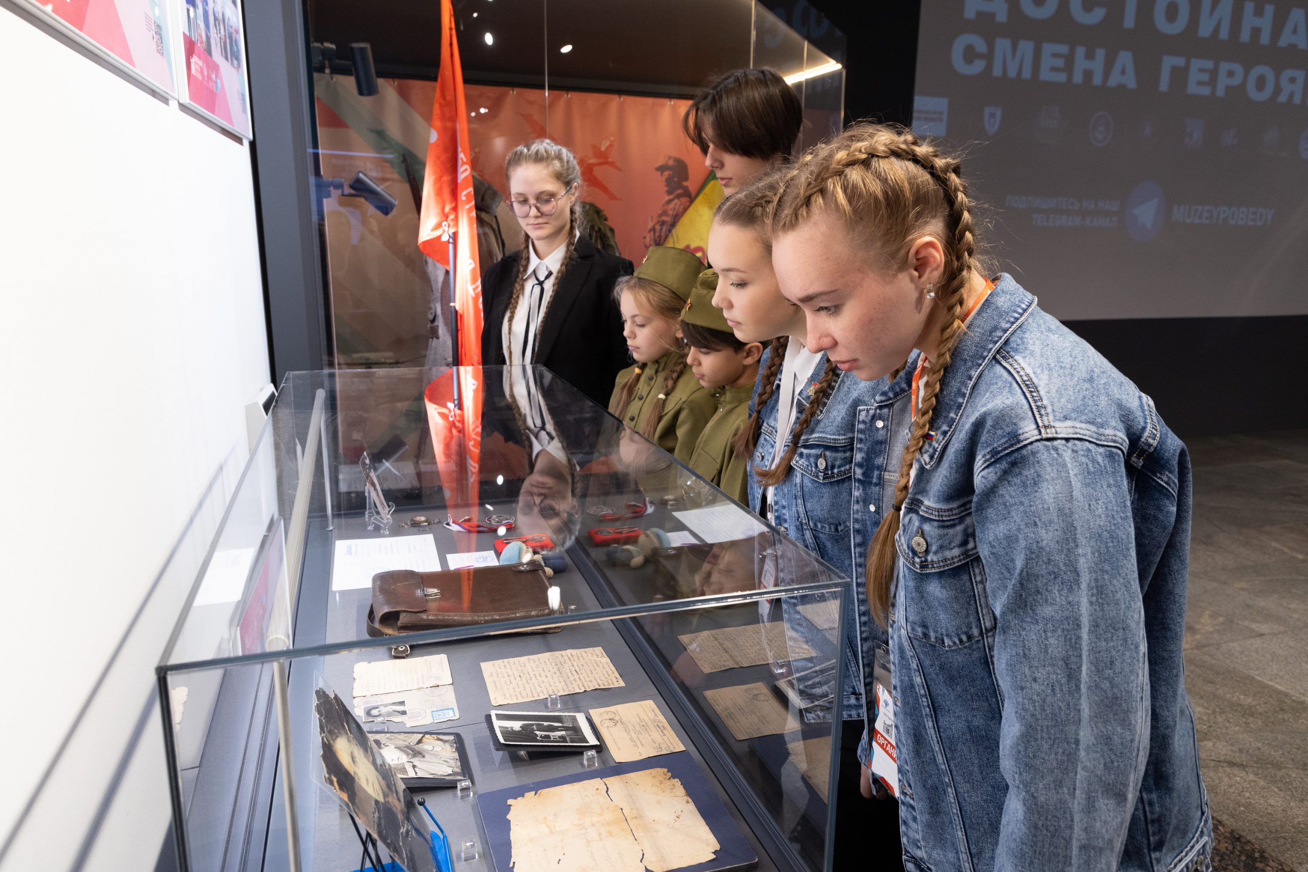 Выставка «Достойная смена героям» открылась в Музее Победы. Уникальная экспозиция стала самым масштабным выставочным проектом программы «Школьный музей Победы» и впервые объединила 18 музеев образовательных организаций со всей страны: от Калининграда до Якутии.
