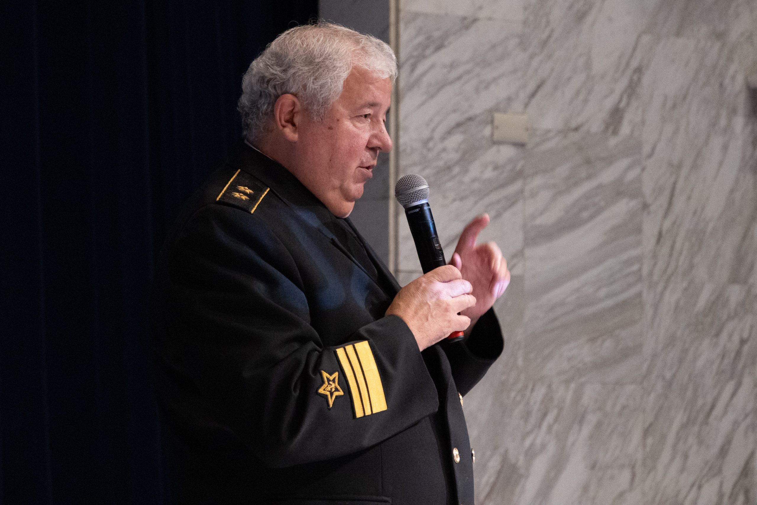 «Ваши экспонаты увидит вся страна. Это очень важно и значимо для всех нас. Символично, что название выставки «Достойная смена героям» касается тех героев, которые сейчас продолжают дело и традиции наших отцов и дедов — тех, кто завоевывал и завоевал Великую Победу. Музей Победы одним из первых открыл несколько выставок, посвященных специальной военной операции, тем ребятам, которые сейчас воюют, отстаивая интересы нашей Родины», — обратился к участникам церемонии открытия заместитель генерального директора Музея Победы вице-адмирал Федор Смуглин.