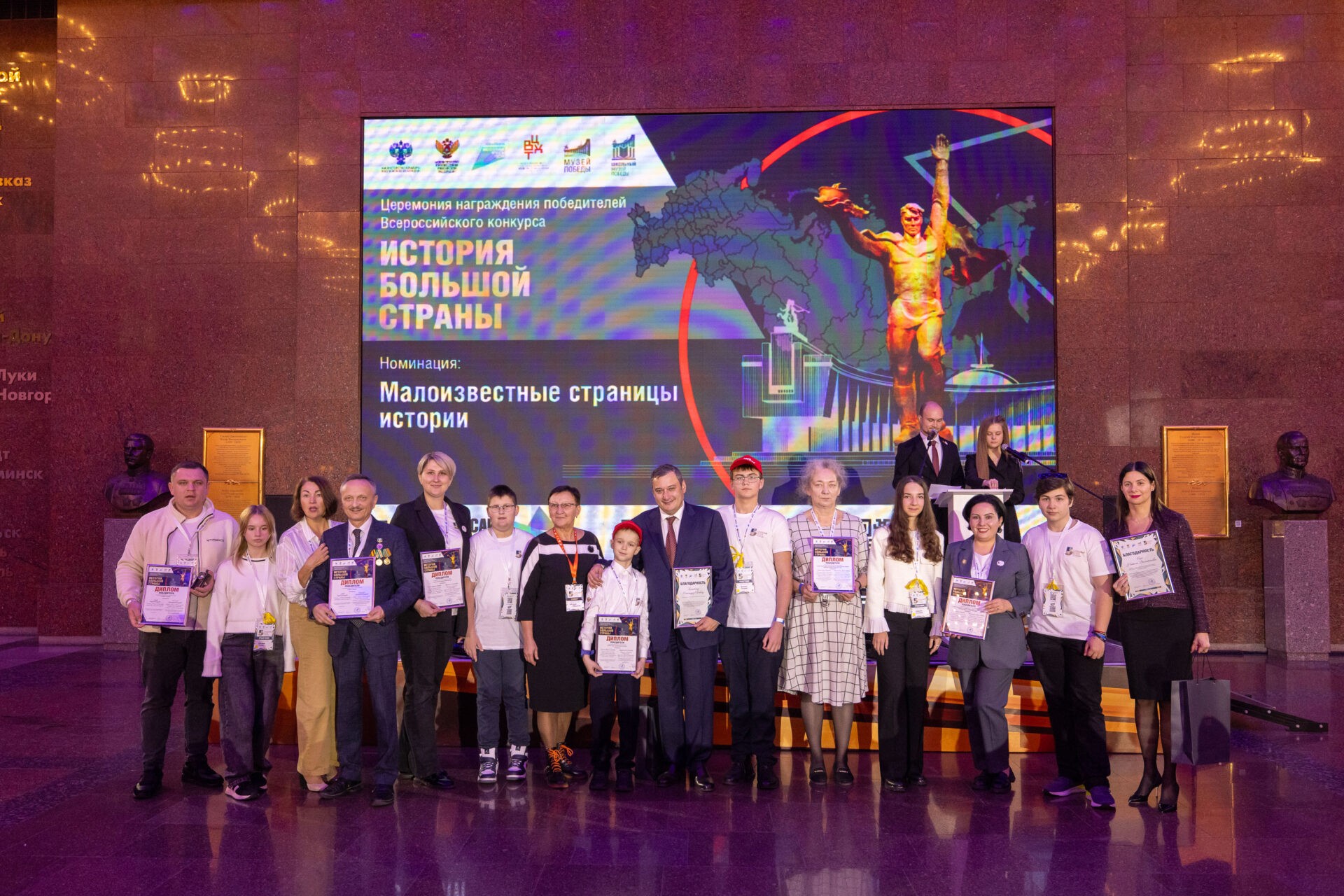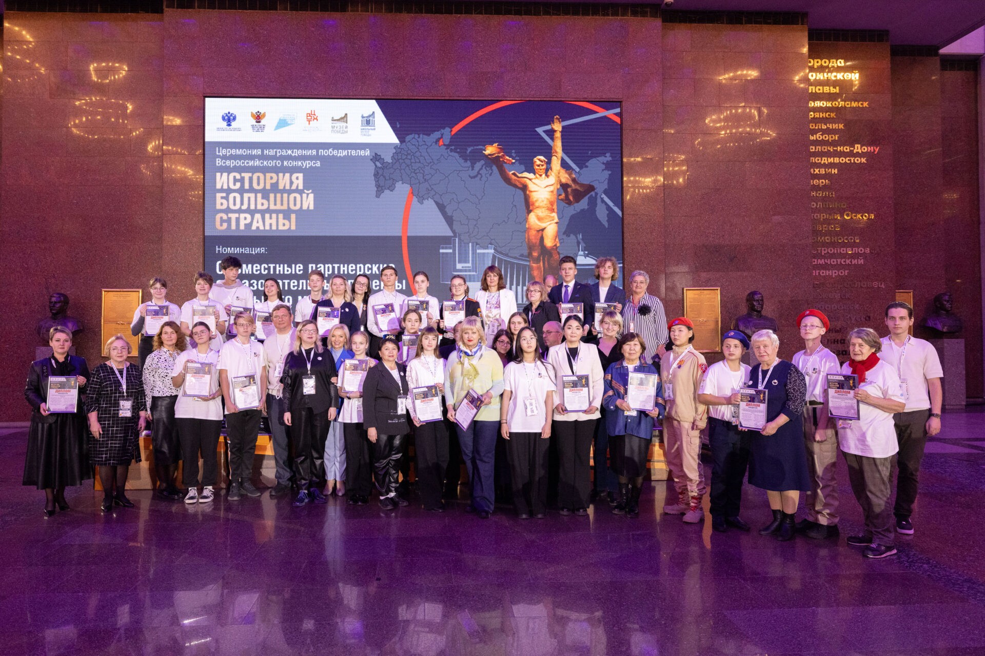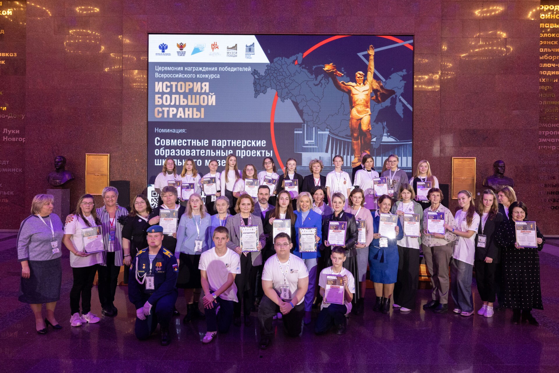 На заключительном мероприятии съезда в Зале Полководцев прошло награждение команд — победителей Всероссийского конкурса «История большой страны», проходившего в течение 2024 года. Авторов лучших работ наградили в восьми номинациях: «Малоизвестные страницы истории», «Герои и дивизии Великой Отечественной войны», «Ополчение», «Тыл фронту», «Крым и Севастополь», «80-летие полного освобождения Ленинграда от фашистской блокады», «Ими гордится Россия», «Совместные партнерские образовательные проекты школьного музея».
