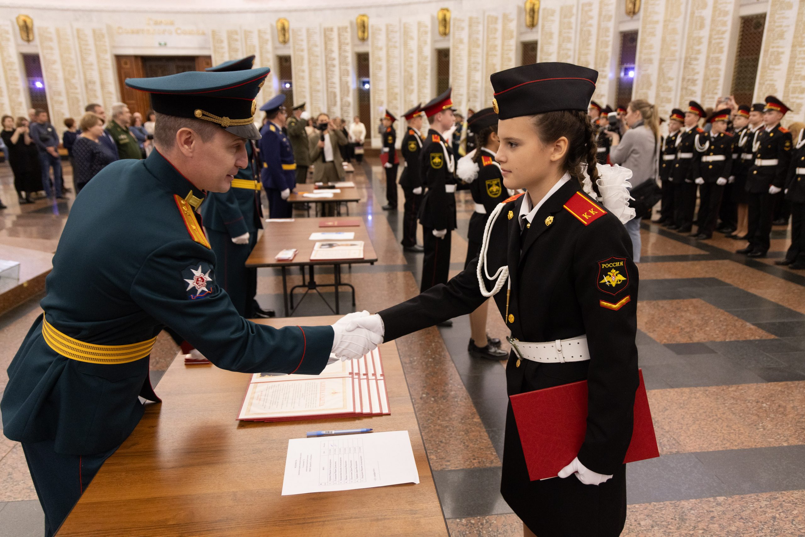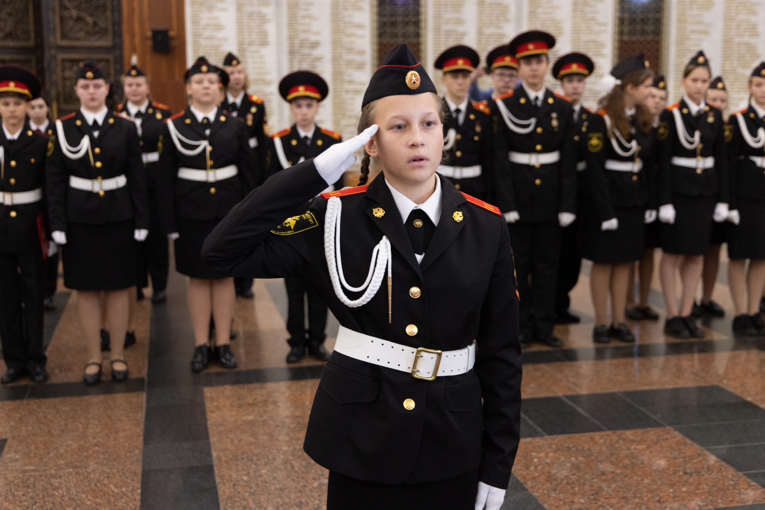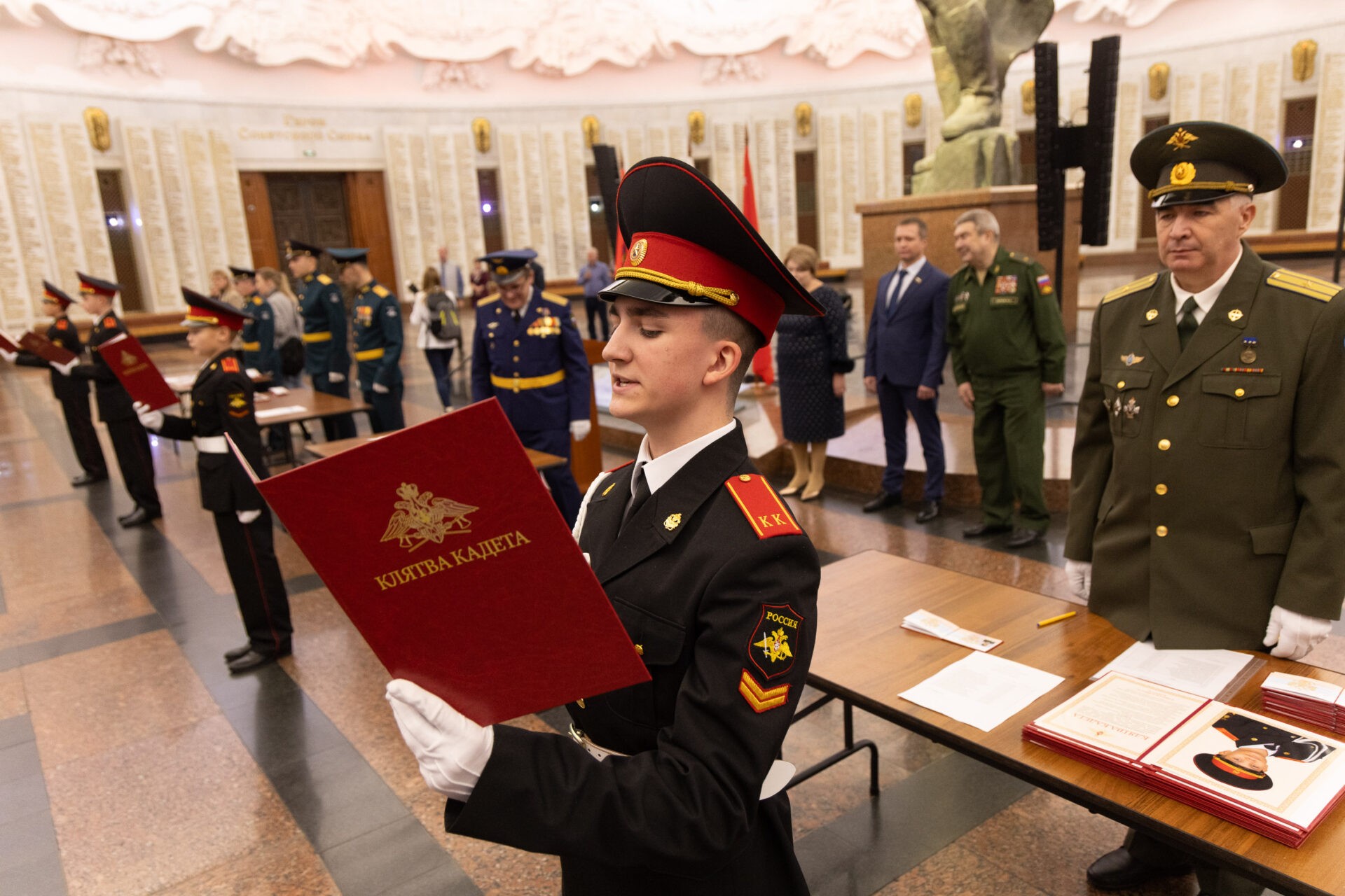 Ранее в Зале Славы Музея Победы учащиеся Московского президентского кадетского училища имени М. А. Шолохова принесли торжественную клятву кадета.
