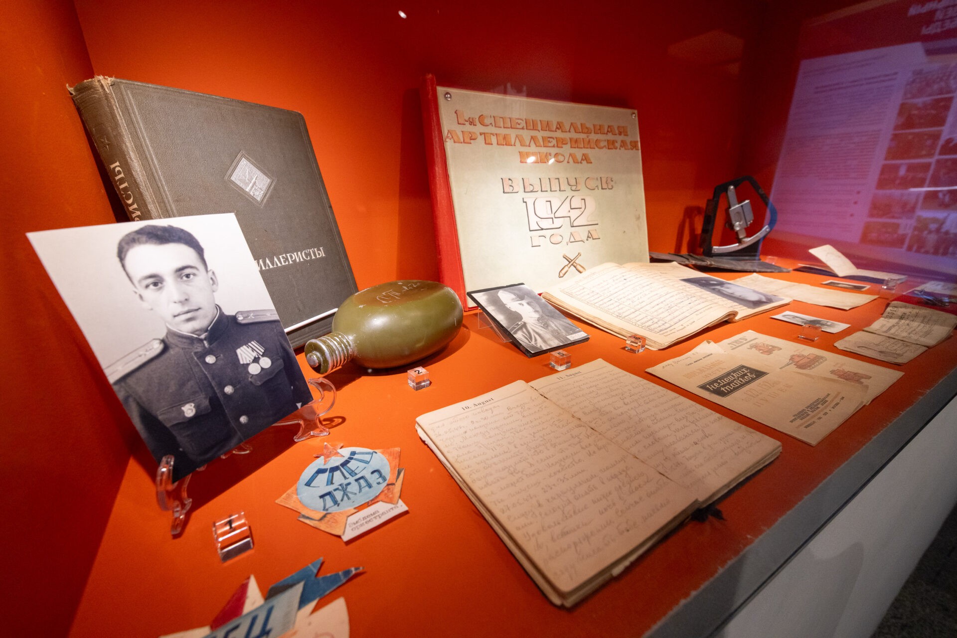 В экспозицию также вошли предметы других учеников, например записная книжка и фронтовые документы старшего лейтенанта, участника легендарного парада на Красной площади 7 ноября 1941 года, советника МИД СССР 2-го класса Юрия Александровича Кабанова, трофейный аккордеон Fontanella гвардии лейтенанта Алексея Николаевича Ботнева, который ему подарили его фронтовые товарищи в мае 1945 года, прибор расчета корректур артиллерийской стрельбы гвардии подполковника Виктора Викторовича Юрьева. Среди экспонатов и китель с наградами, и другие личные вещи гвардии полковника Сергея Дмитриевича Титова, прошедшего фронтовыми дорогами от Москвы до Австрии, близкого соратника конструктора ракетно-космических систем Сергея Павловича Королева и другие уникальные экспонаты.