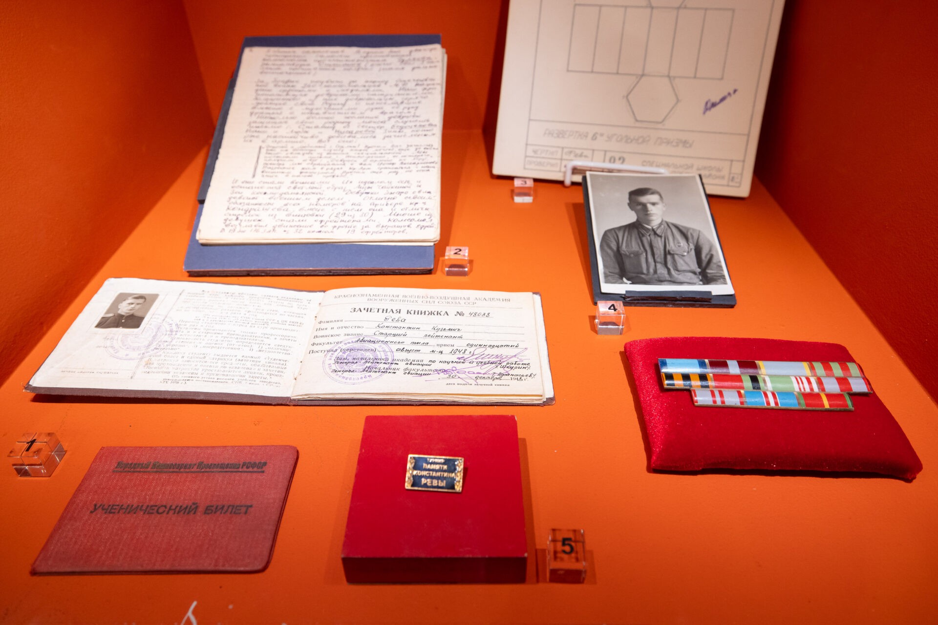 Экспозиция также рассказывает о выпускниках 1-й Московской специальной артиллерийской школы Наркомпроса РСФСР. За время своего существования в 1937–1946 годах учреждение подготовило около 1500 специалистов артиллерии. Посетители узнают о выпускнике спецшколы 1940 года — полковнике Константине Кузьмиче Реве, ставшем впоследствии заслуженным мастером спорта СССР, двукратным чемпионом мира и Европы по волейболу. Гости увидят его чертежи 1938 года, зачетную книжку, грамоту, архивные снимки.