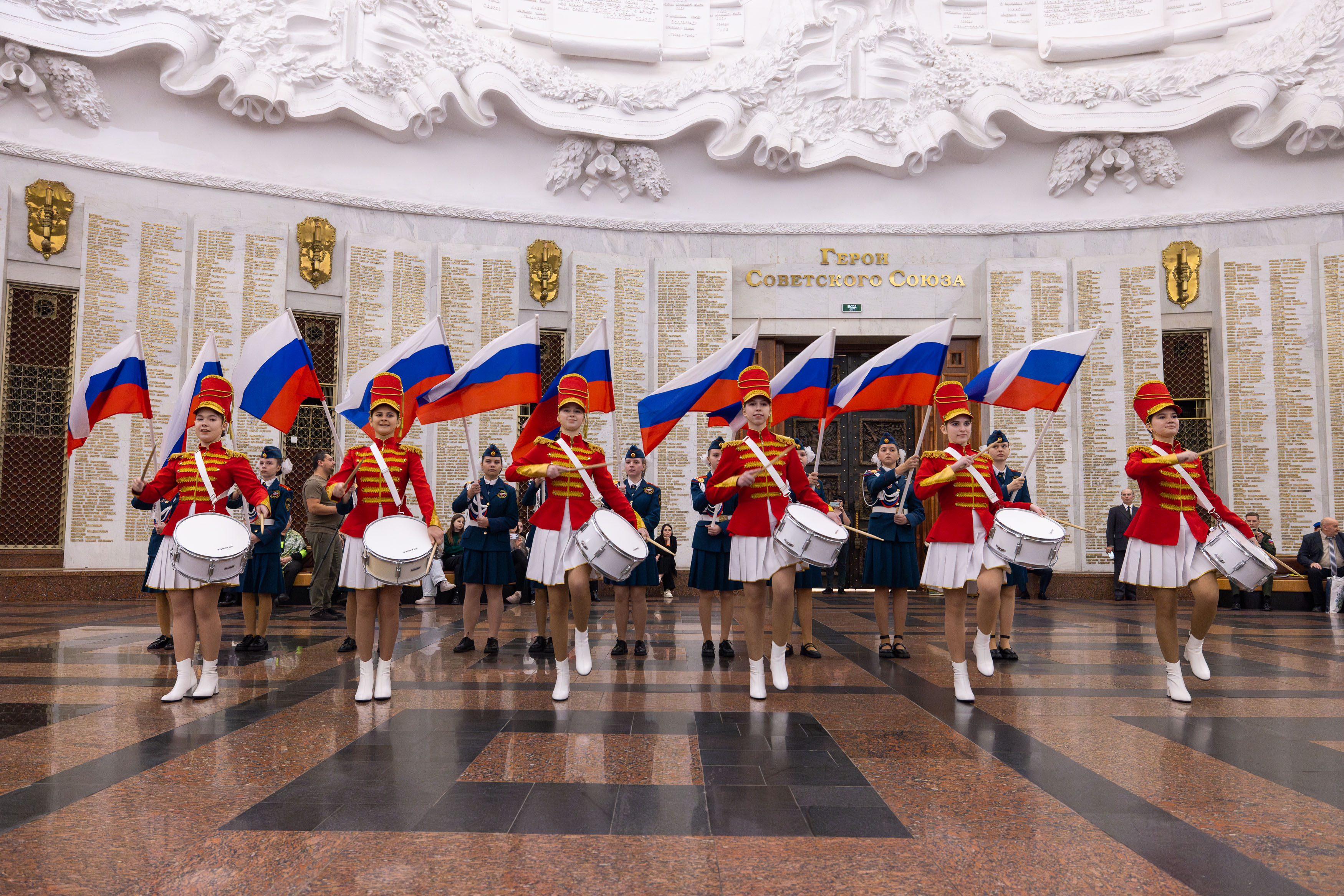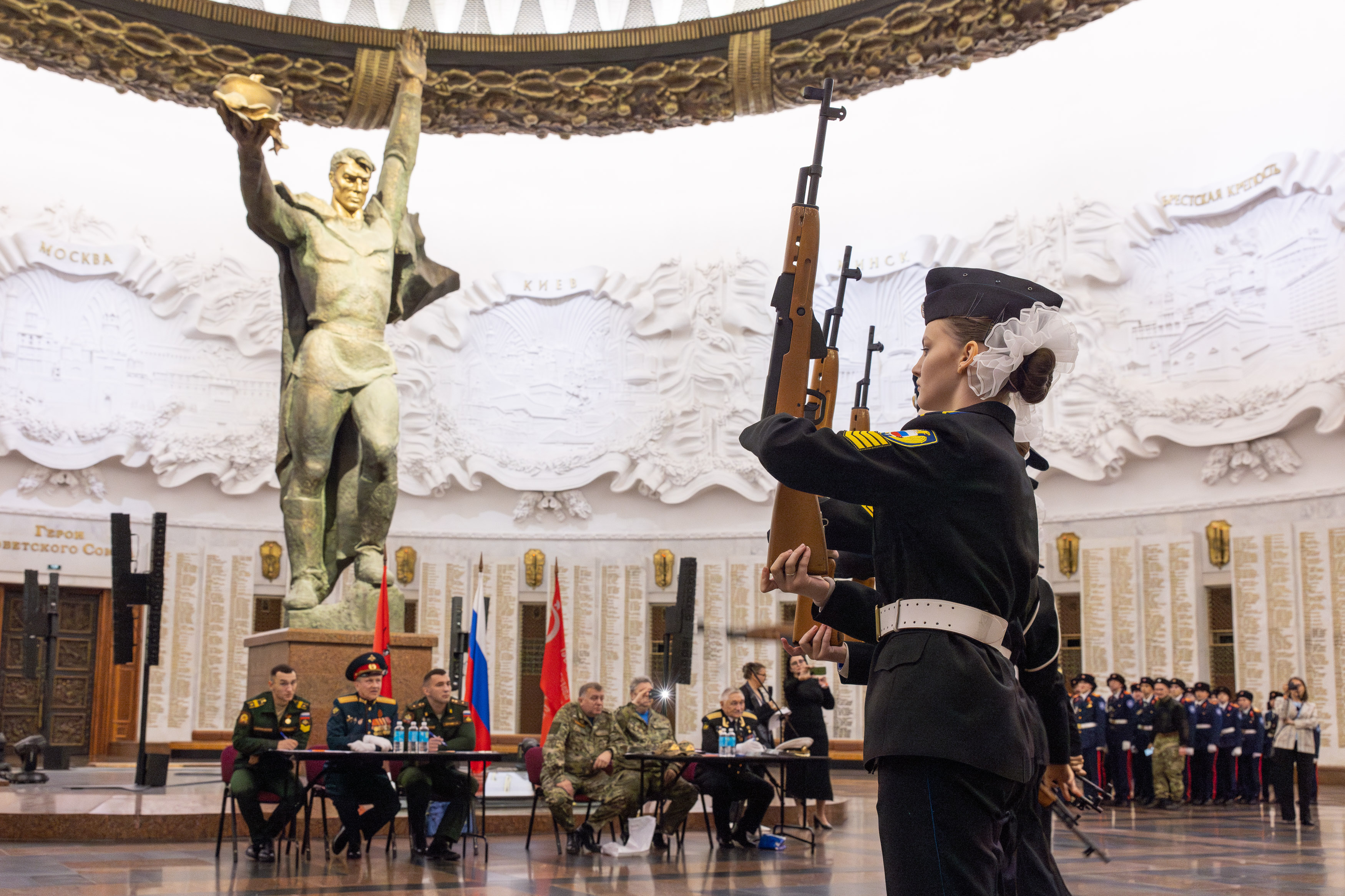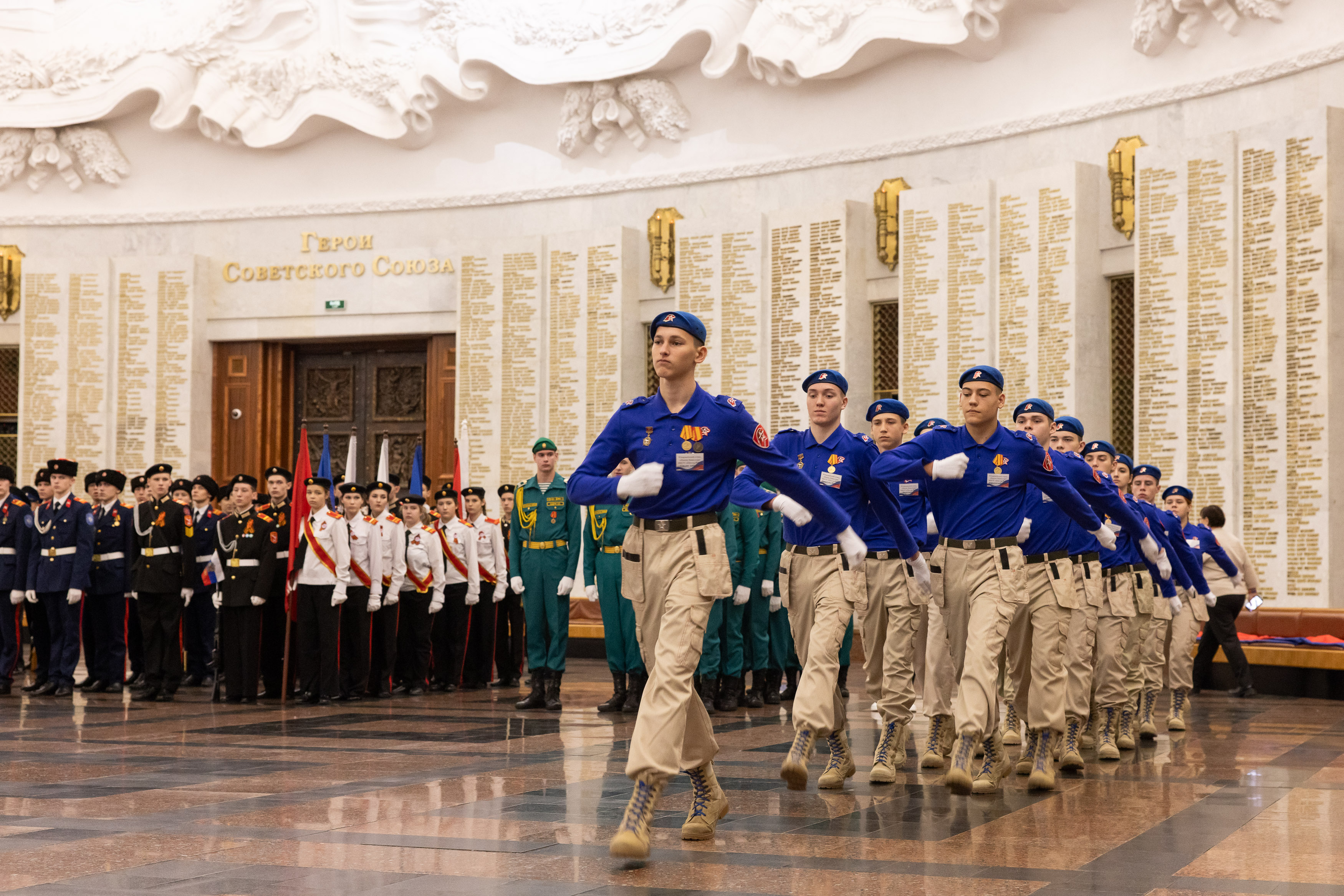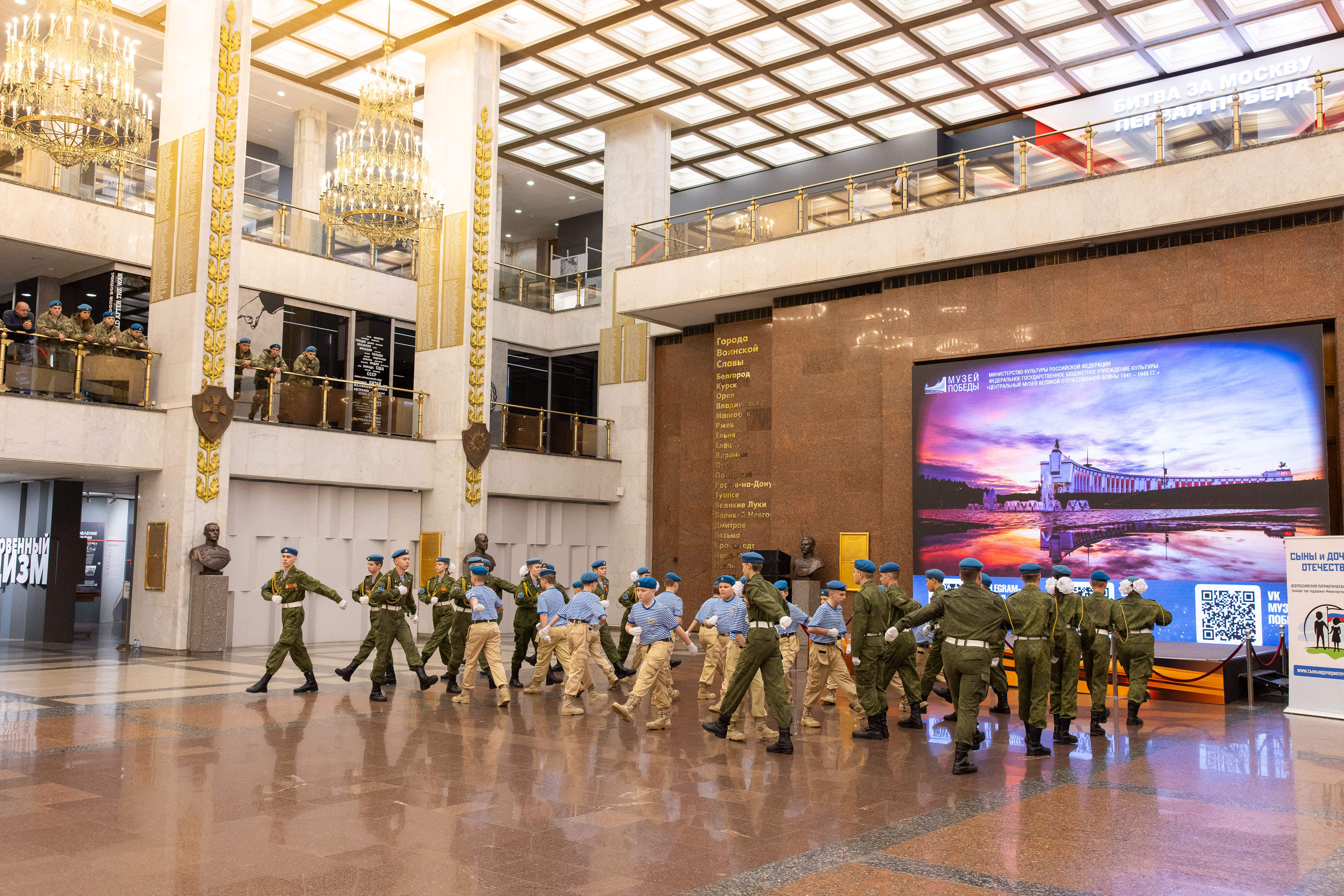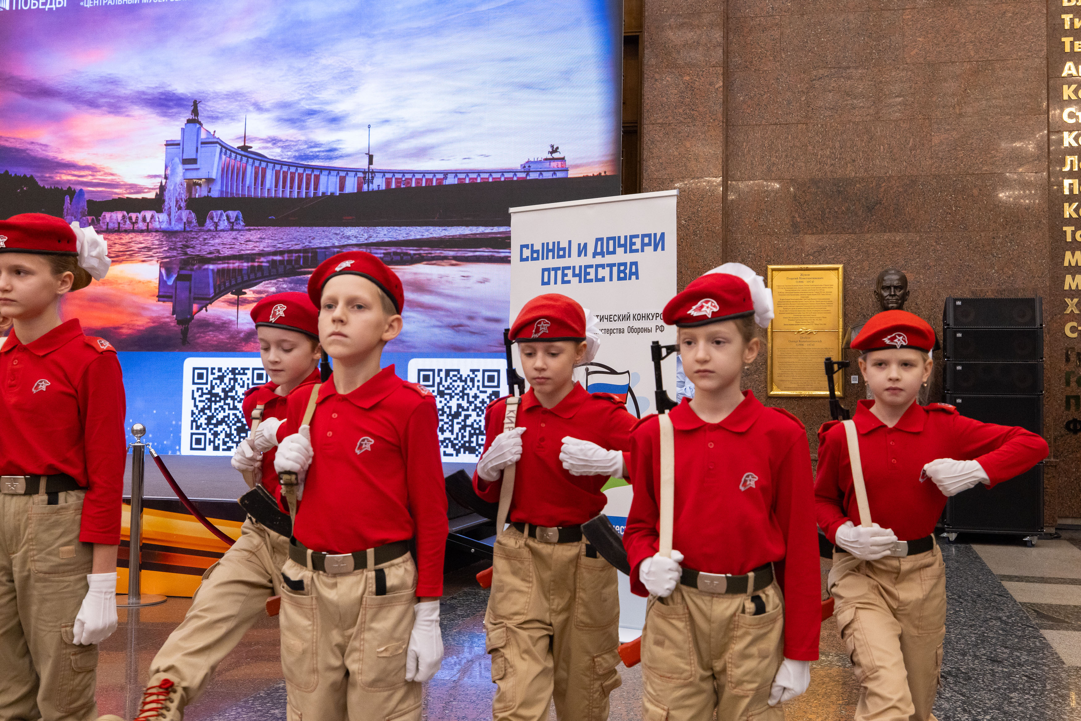 Заключительный этап IX Всероссийского патриотического конкурса «Сыны и дочери Отечества» состоялся в Музее Победы. Более 600 кадет, юнармейцев и воспитанников военно-патриотических клубов показали мастерство строевой подготовки на показательных выступлениях в Зале Славы и Зале Полководцев музея на Поклонной горе.