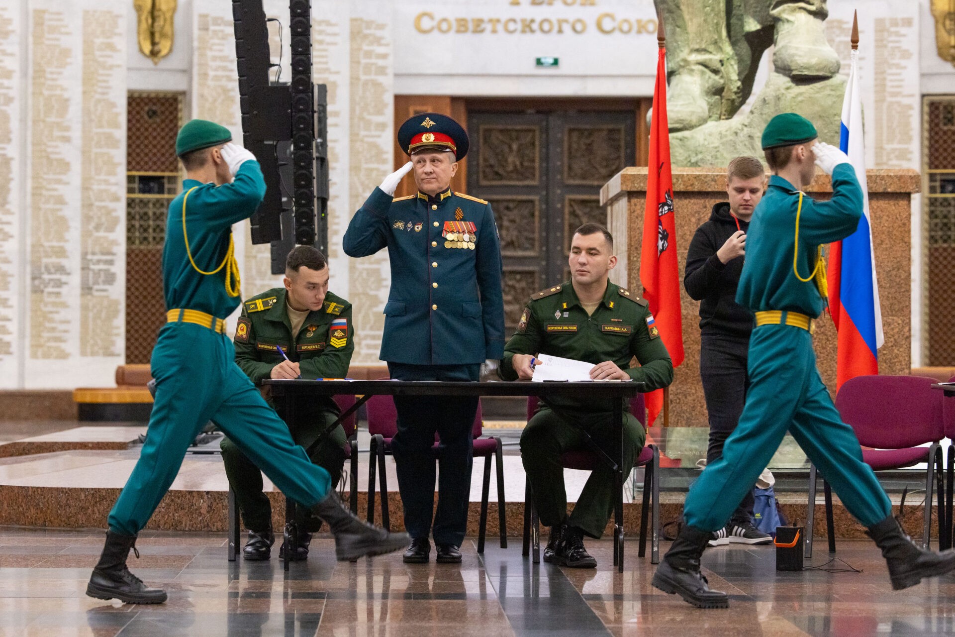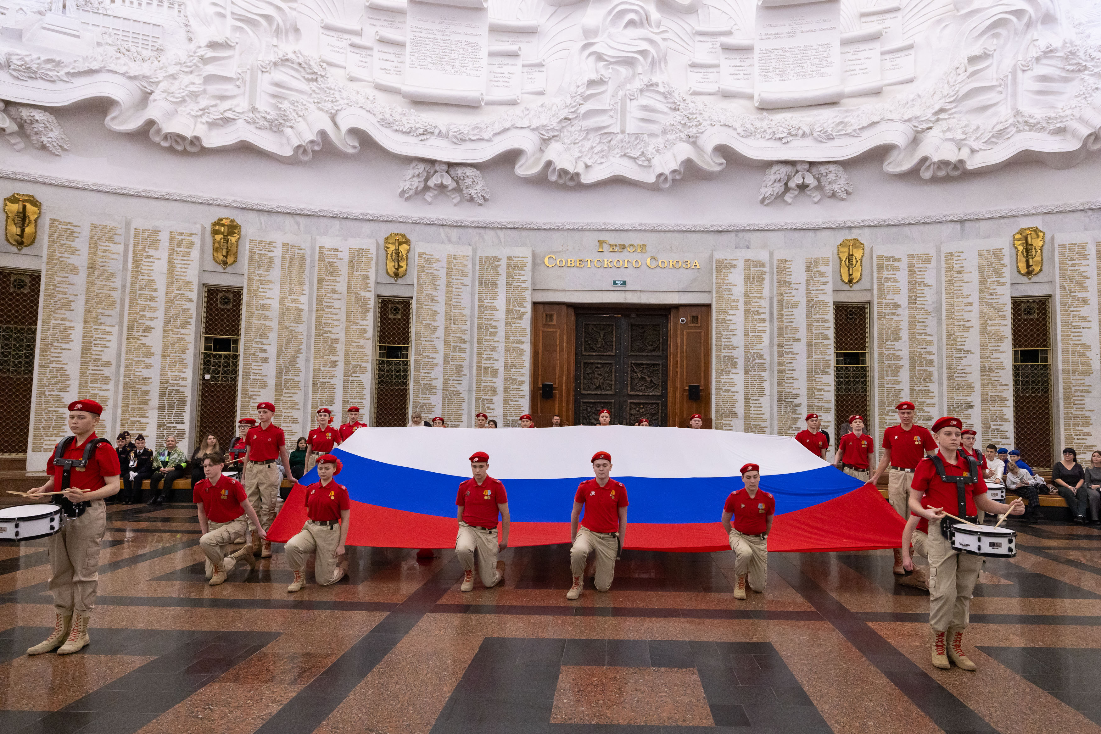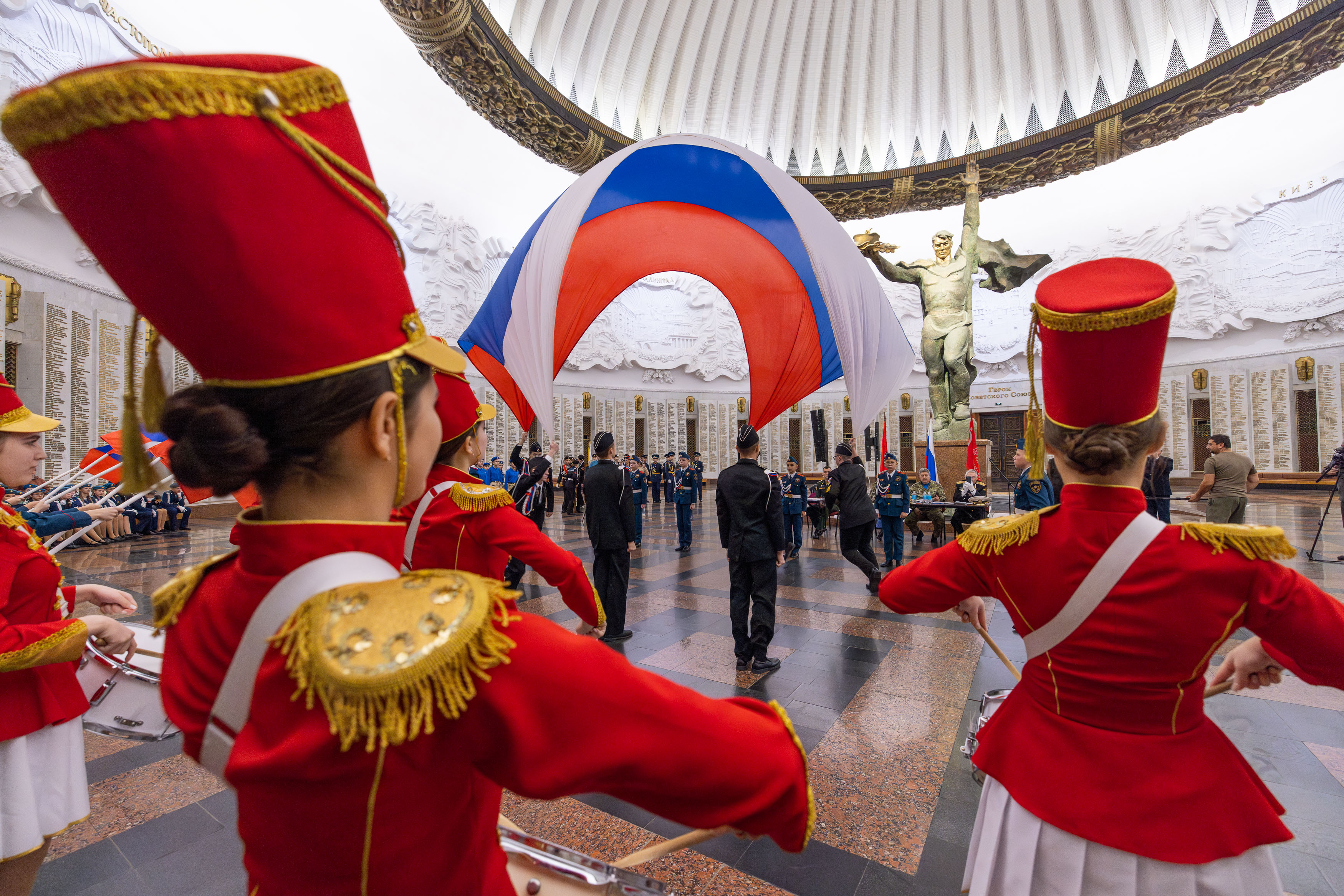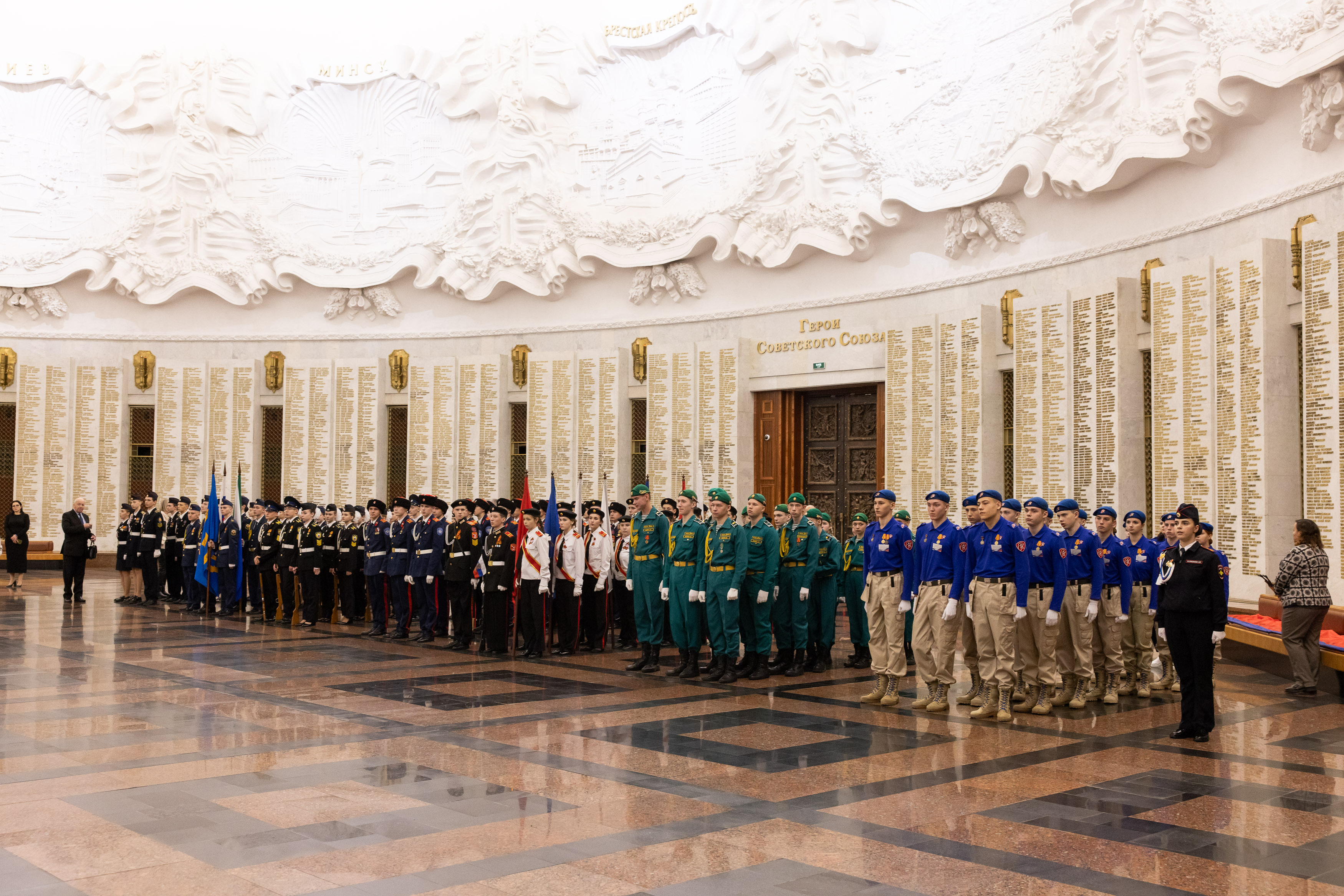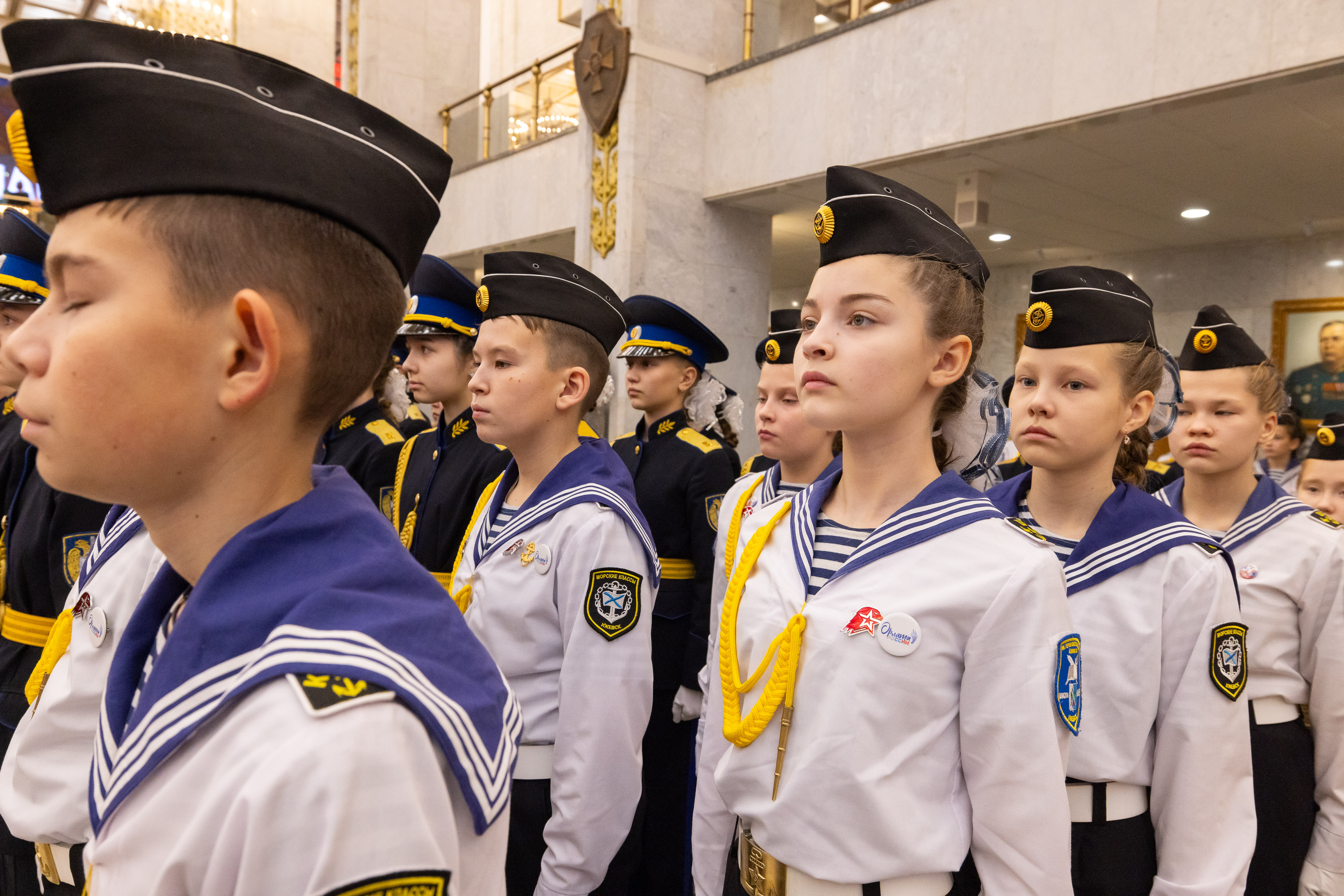 Заключительный этап IX Всероссийского патриотического конкурса «Сыны и дочери Отечества» состоялся в Музее Победы. Более 600 кадет, юнармейцев и воспитанников военно-патриотических клубов показали мастерство строевой подготовки на показательных выступлениях в Зале Славы и Зале Полководцев музея на Поклонной горе.