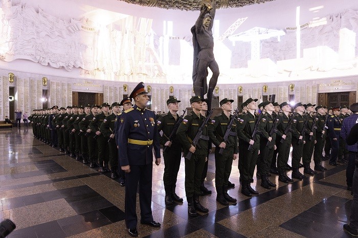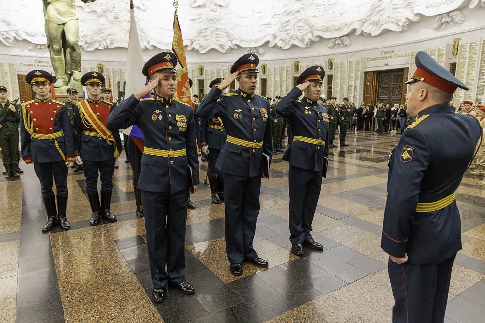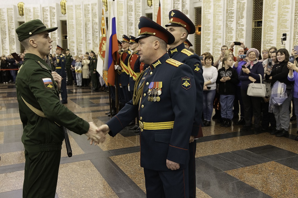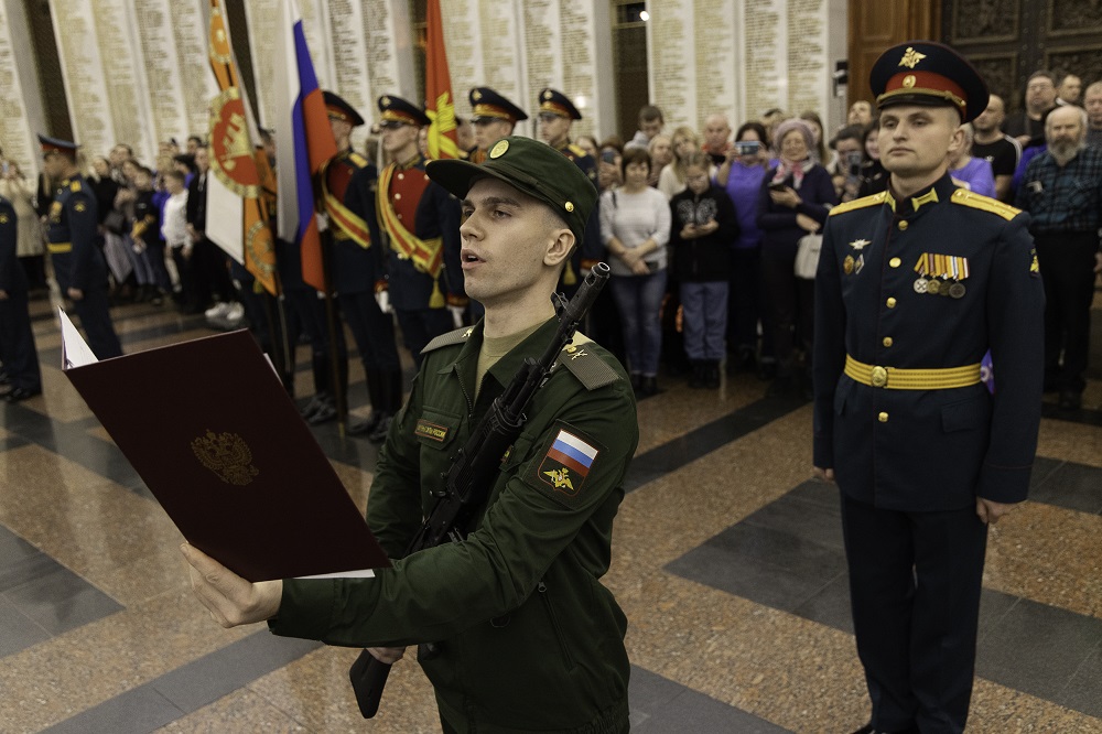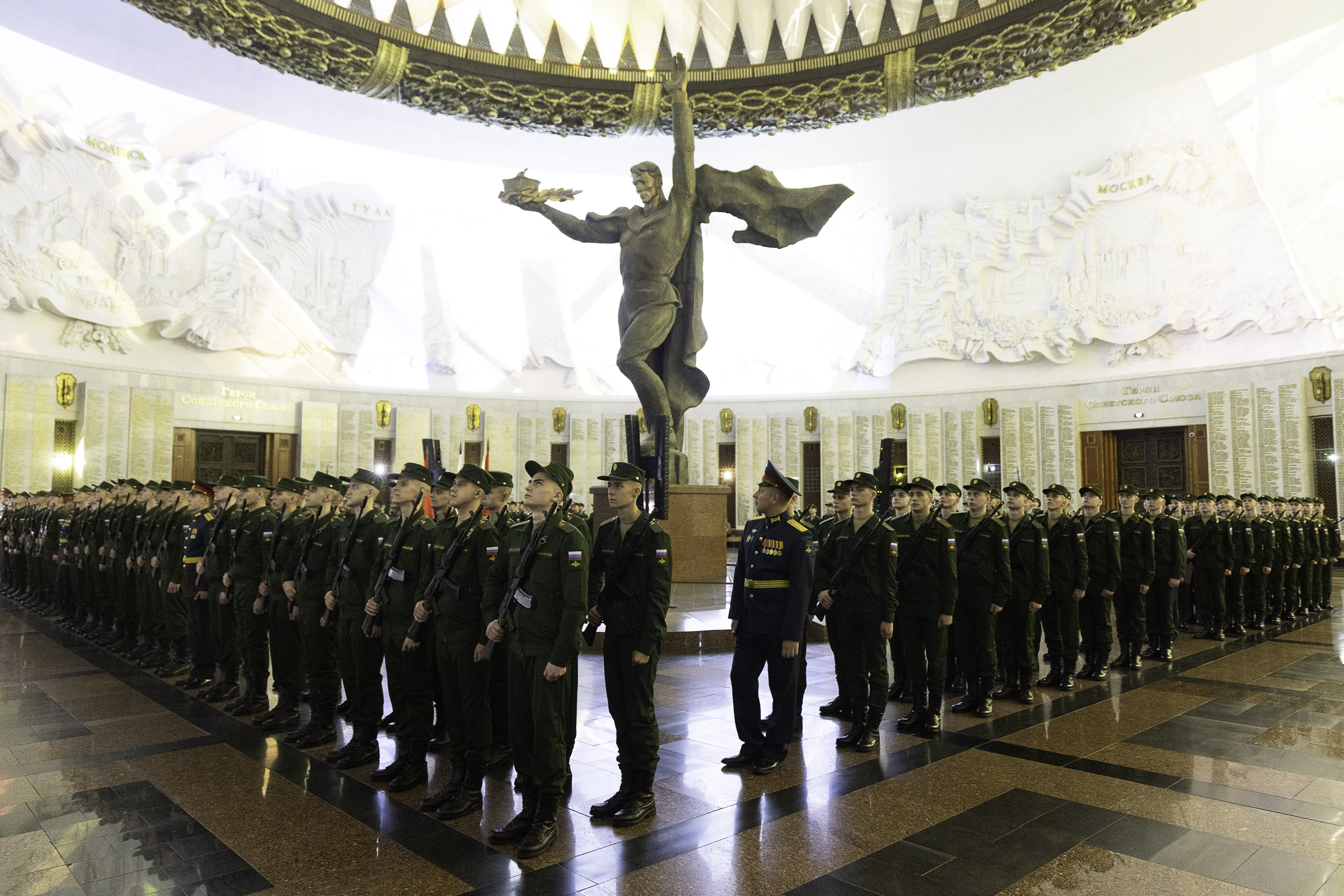 В Музее Победы состоялся торжественный ритуал приведения к военной присяге вновь прибывшего пополнения 154-го отдельного комендантского Преображенского полка. Церемония традиционно прошла в величественном Зале Славы Музея Победы.