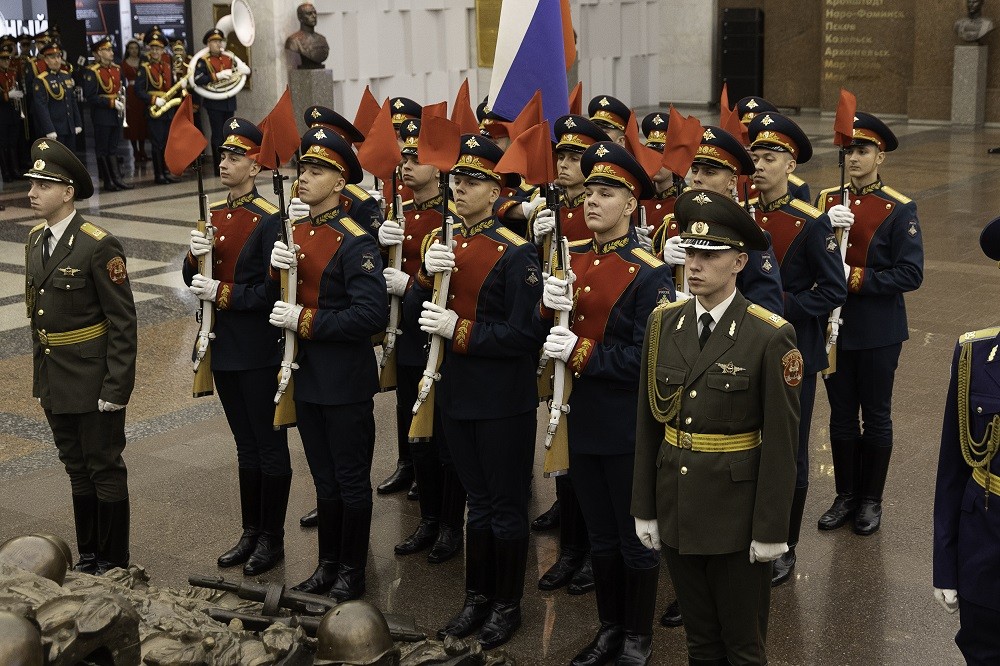 Завершилось мероприятие показательными выступлениями роты почетного караула и образцового военного оркестра в Зале Полководцев Музея Победы.