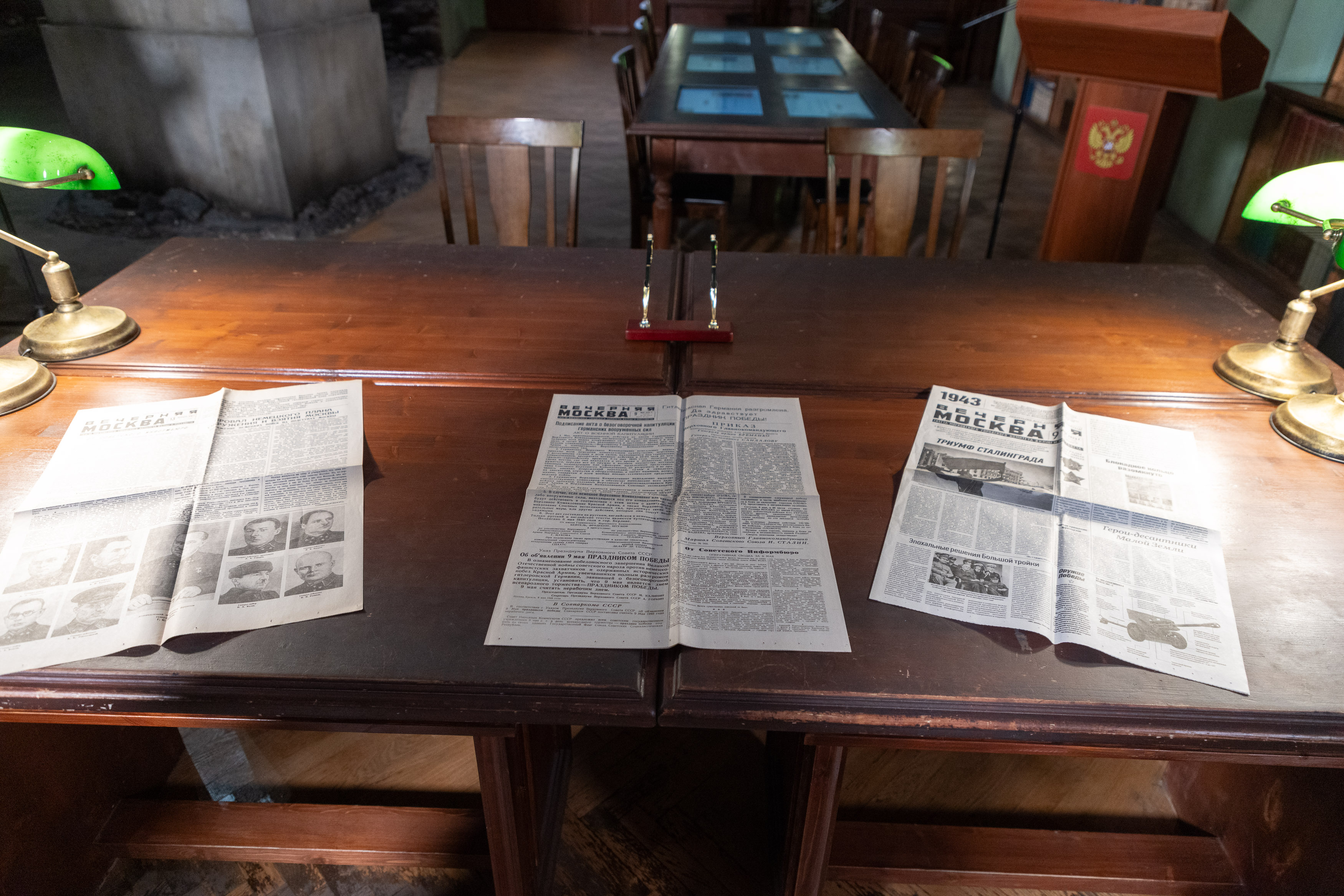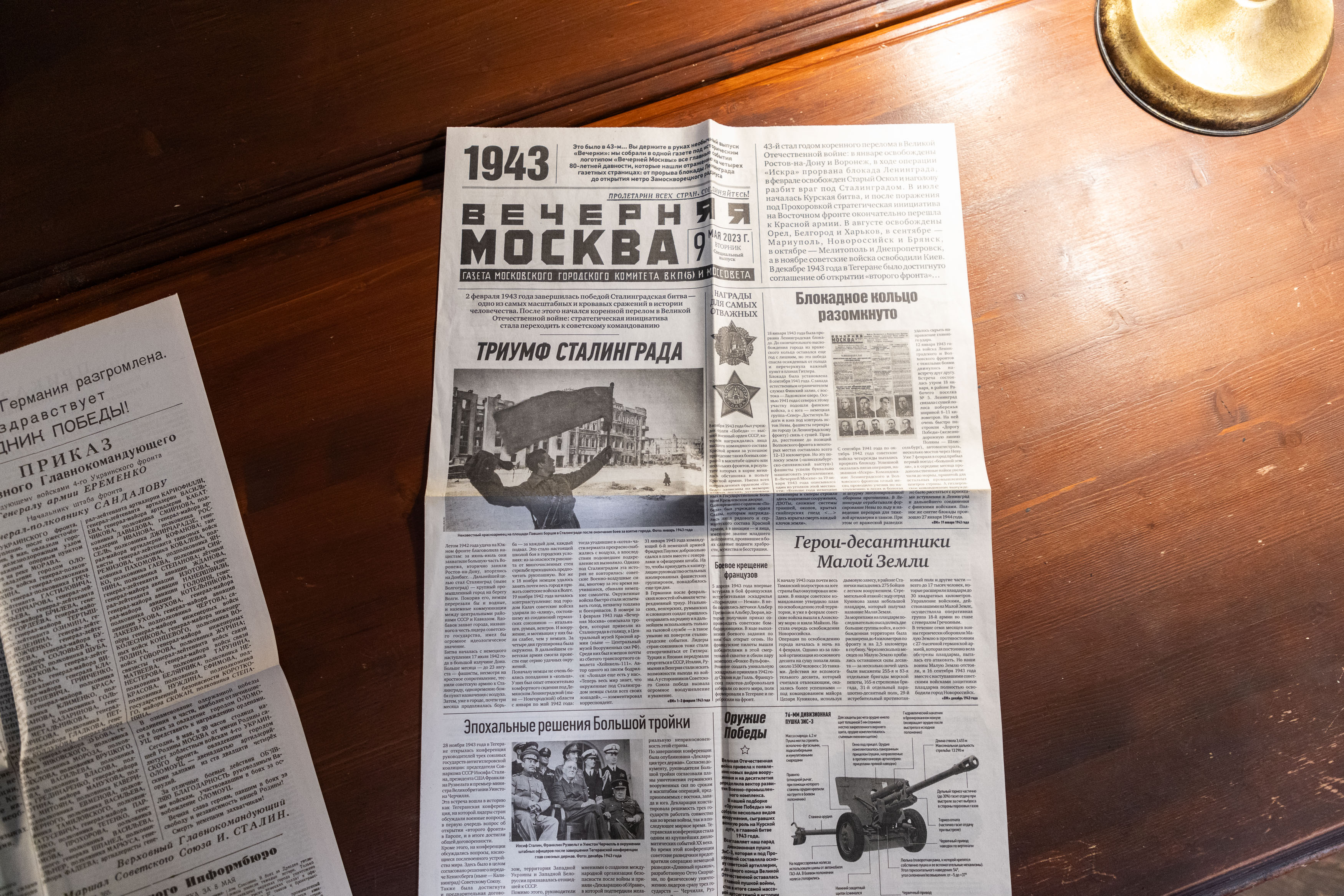 После торжественной церемонии подписания соглашения сотрудники «Вечерней Москвы» передали в дар на вечное хранение Музею Победы два репринта: от 9 мая 1945 года и от 13 декабря 1941 года, а также спецвыпуск «Это было в 1943» от 9 мая 2023 года.