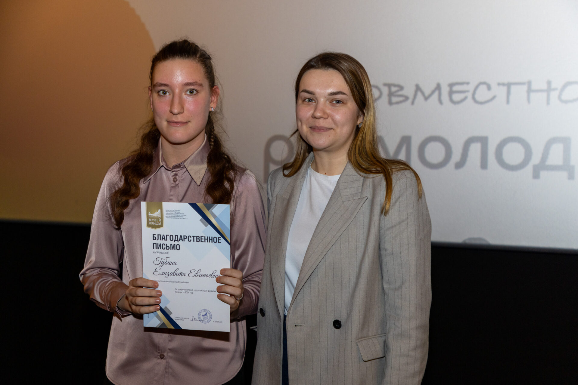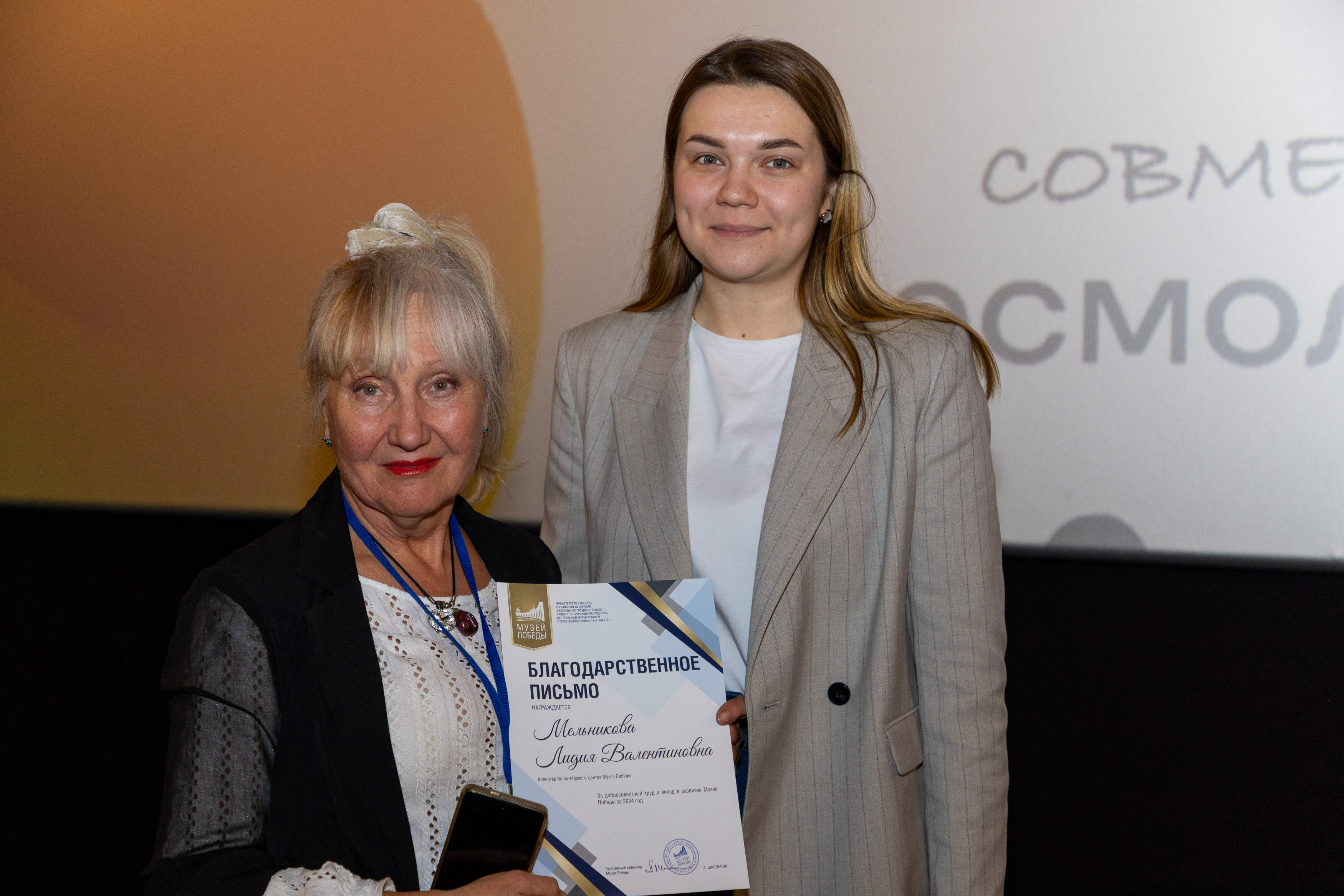 Также в Музее Победы состоялось награждение волонтеров в нескольких номинациях. Лидером по количеству набранных часов в «Парк Победы. Главный патриотический» стала Екатерина Маханькова, а дольше всех (суммарно — 228 часов) в Музее Победы помогала Маргарита Платонова.