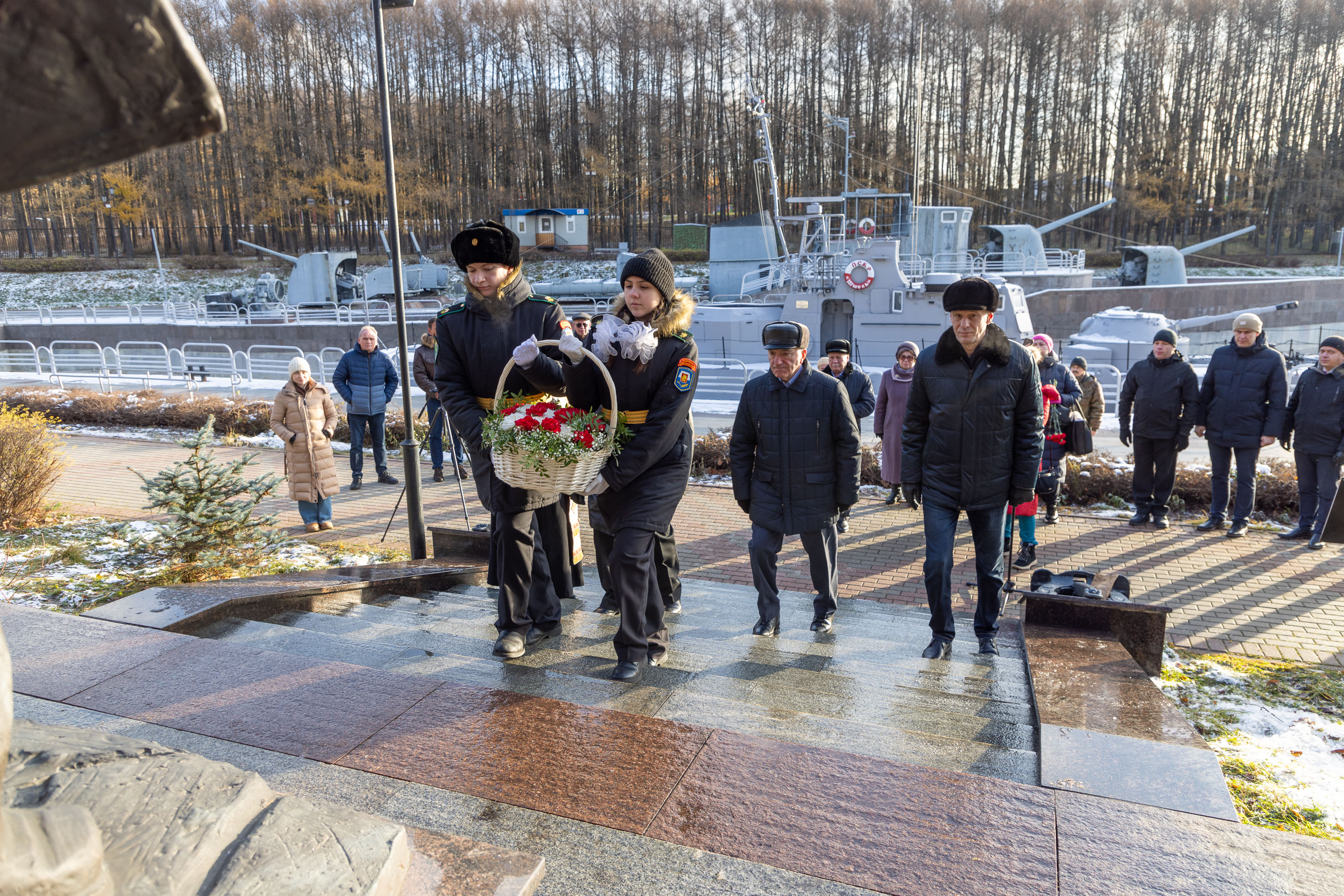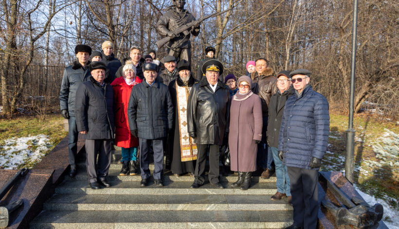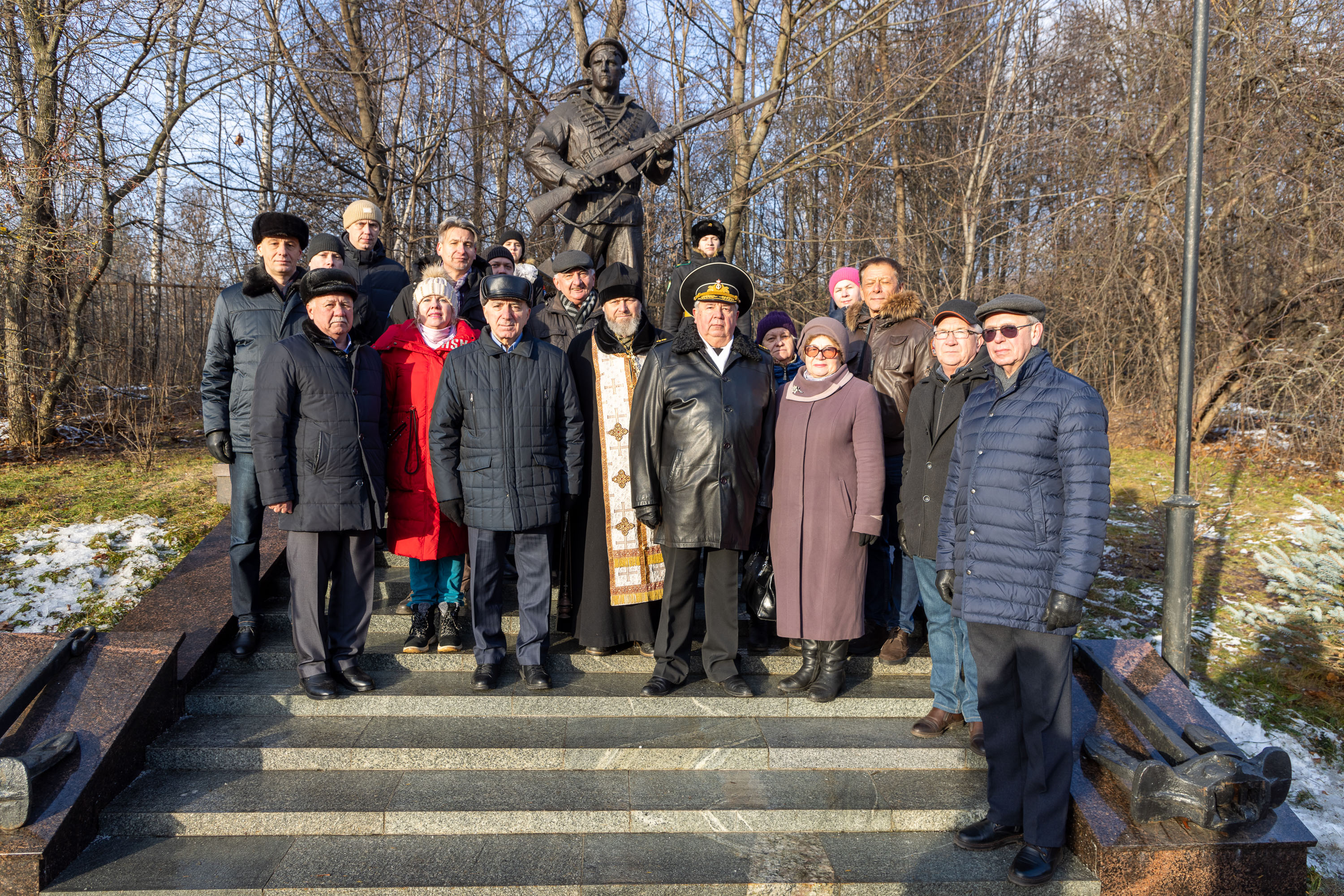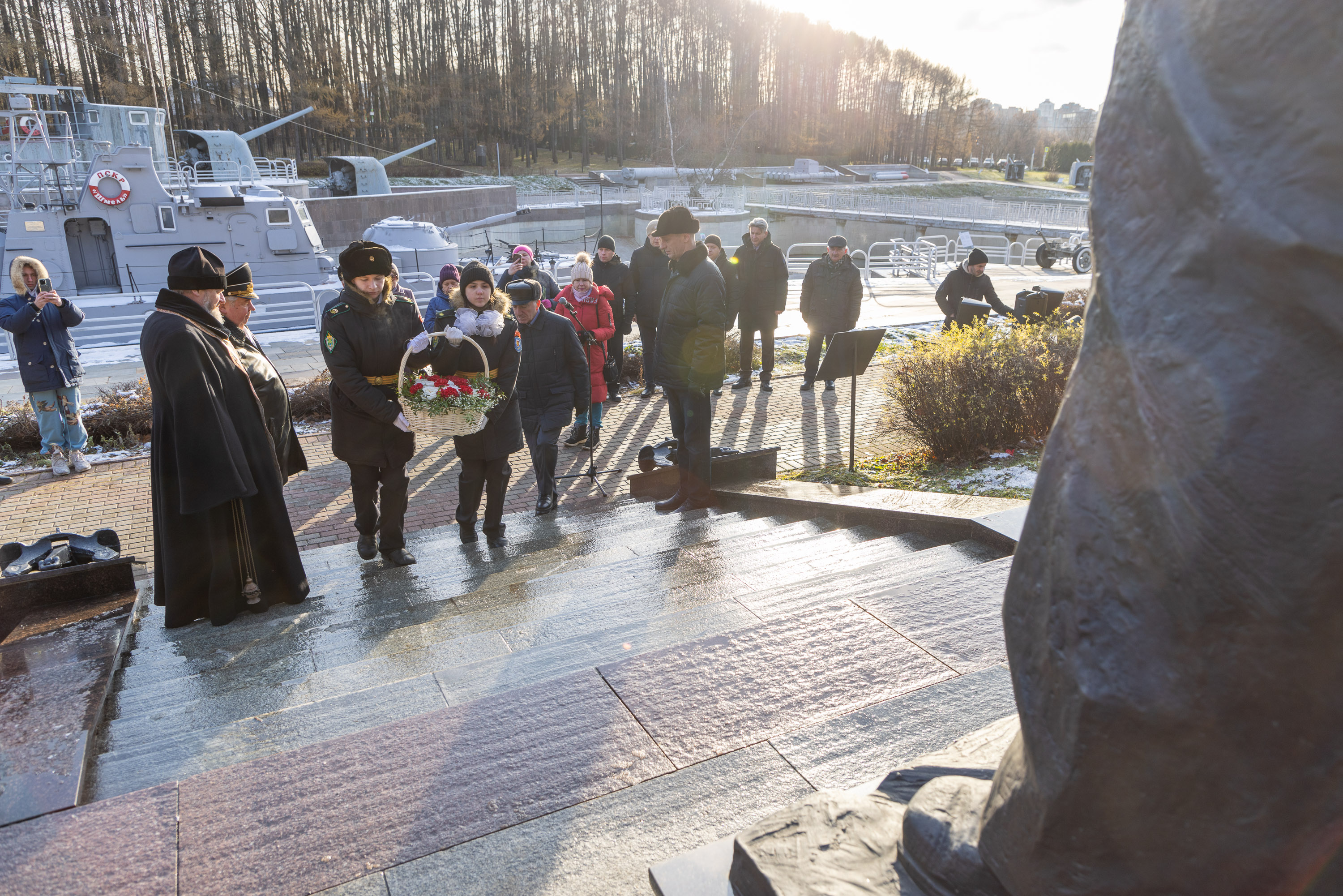 Участники мероприятия возложили цветы к памятнику военным морякам, погибшим в битве под Москвой, а отец Александр провел литургию.