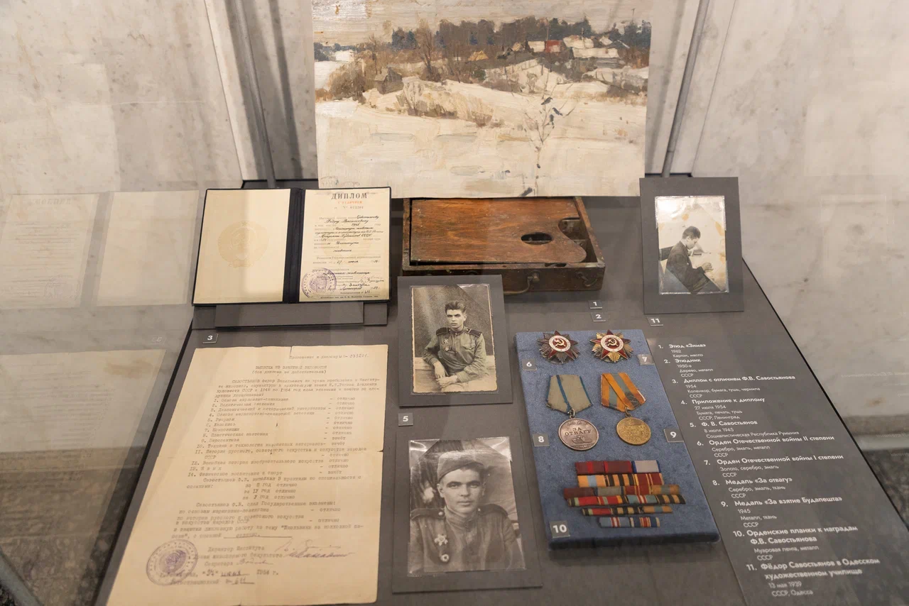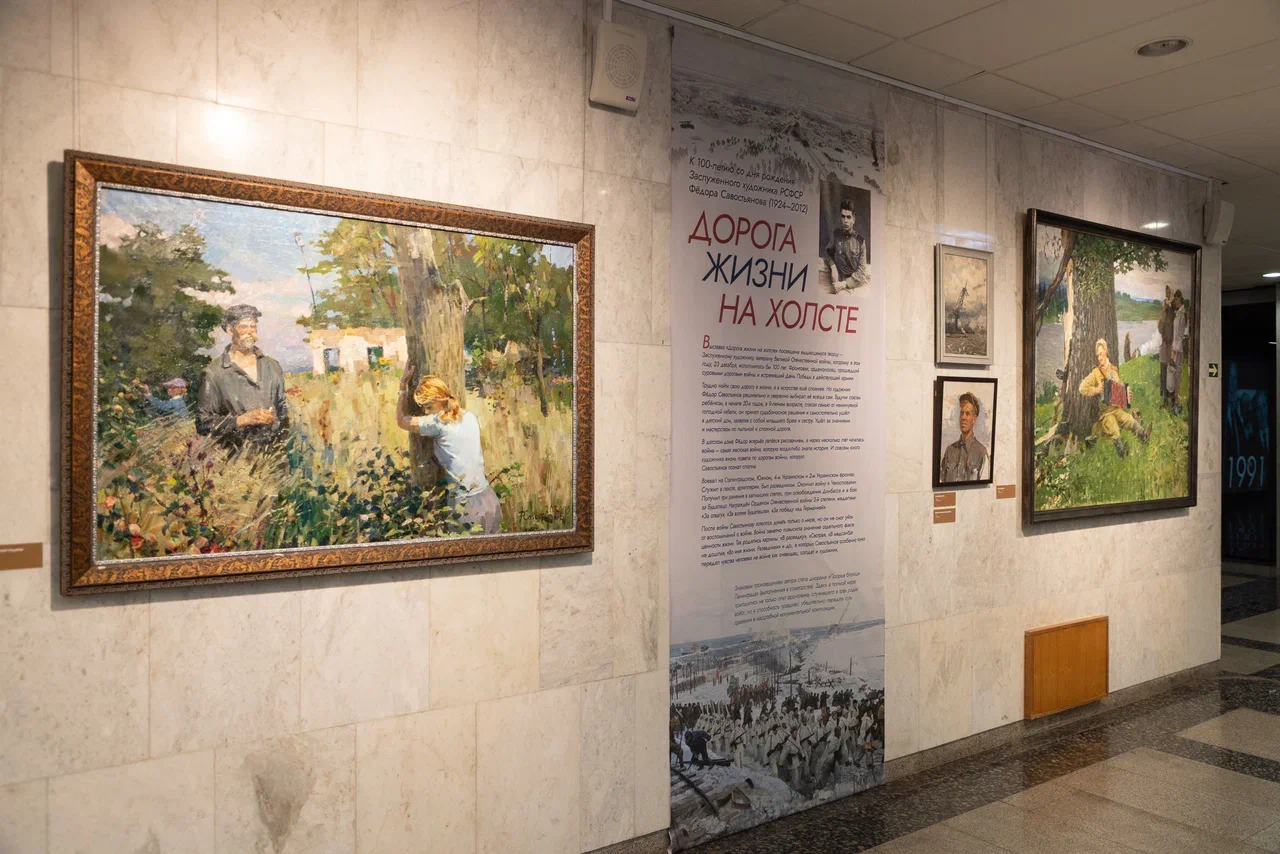В экспозицию вошли знаковые работы художника — картины «Во имя жизни. Разведчики» и «В медсанбат не дошли (Подсолнухи)». Кроме того, на выставке представили личные вещи и награды Федора Савостьянова.
