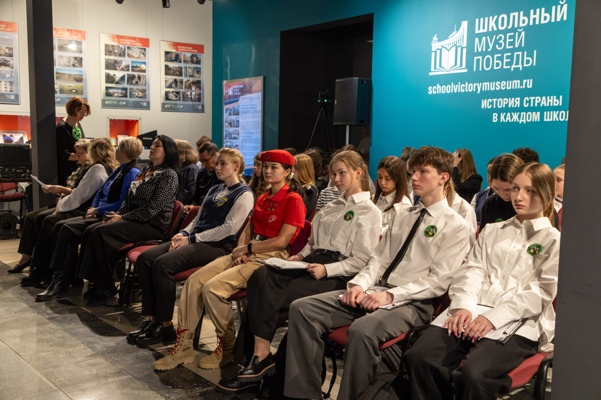 В Музее Победы состоялась межрегиональная конференция в рамках работы выставки «Равнение на героев». На площадке «Школьный Музей Победы» встретились учащиеся образовательных учреждений Москвы, Орловской области и Беларуси. Дистанционно, онлайн участвовали ученики из Волгограда, Калужской области, Республики Татарстан и Донецкой Народной Республики.