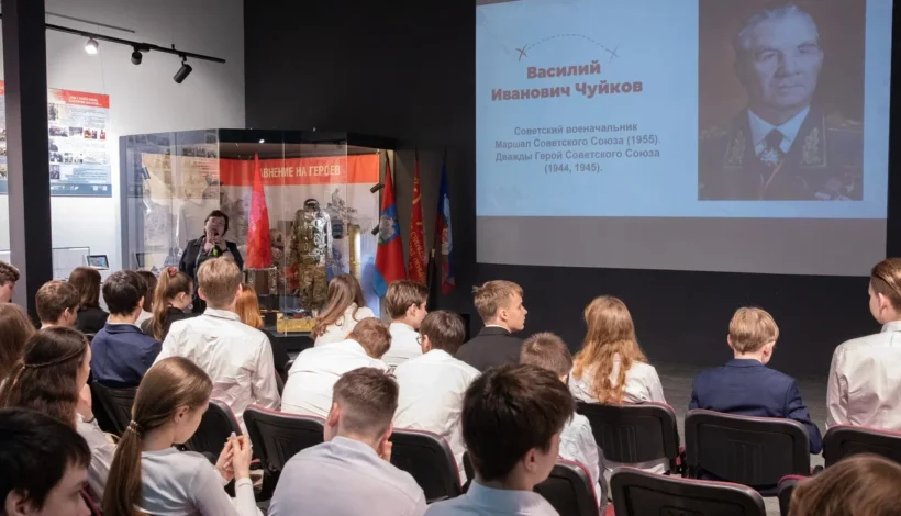 Лекторий, посвященный Маршалу Советского Союза Василию Ивановичу Чуйкову, состоялся в Музее Победы. Занятие проходило в рамках работы выставки «Равнение на героев».