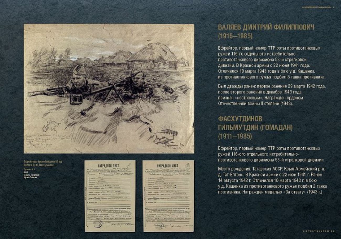 Выставка «Фронтовой портрет. Судьба солдата» — это совместный проект музея на Поклонной горе и Общероссийского общественного движения по увековечению памяти погибших при защите Отечества «Поисковое движение России». В выставку вошли графические работы из фондов Музея Победы — фронтовые портреты 27 красноармейцев, пропавших без вести во время Великой Отечественной войны. Спустя десятилетия поисковикам удалось установить их судьбы и найти места захоронений. Экспозиция расскажет о боевом пути погибших героев. Кроме того, в выставку вошли биографии 12 мастеров Студии военных художников имени Митрофана Грекова, которые на фронтах Великой Отечественной войны создали эти портреты. Среди них — талантливые советские графики Николай Жуков, Николай Пильщиков, Валериан Житенев, Борис Преображенский, Анатолий Горпенко, прошедшие всю войну.
