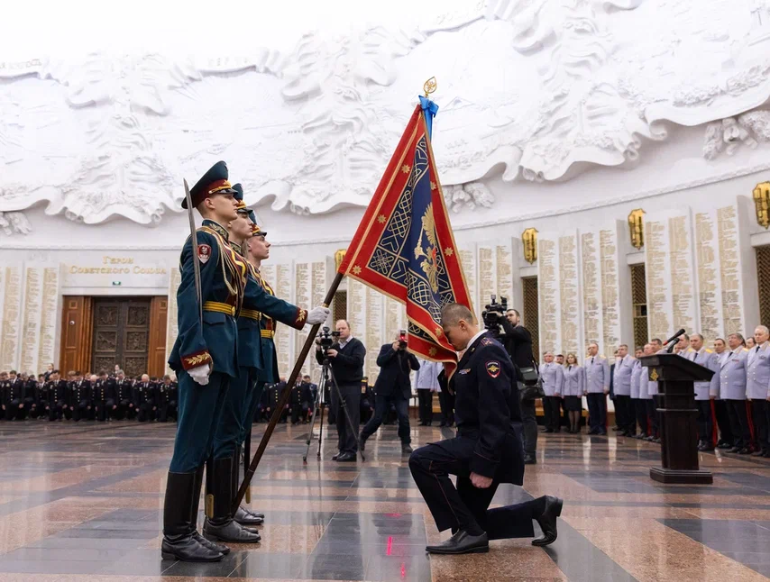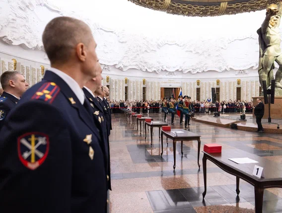 Выпуск слушателей Академии управления МВД России состоялся в Музее Победы. Торжественную церемонию провели в Зале Славы.