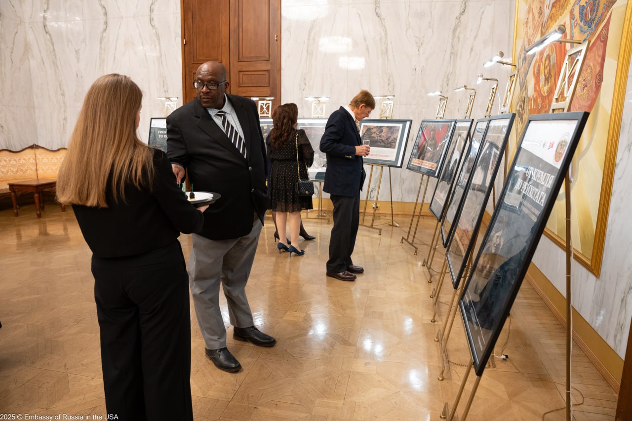 Гости ознакомились с экспозицией об основных вехах Великой Отечественной войны из архива Минобороны России, коллекцией военных плакатов «От Кремля до Рейхстага» из собрания Музея Победы на Поклонной горе, а также фотовыставкой о героях СВО, сообщила пресс-служба Посольства России в США в телеграм-канале.