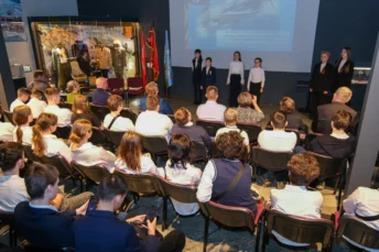 В мероприятии приняли участие юные музейные активисты из Москвы и Тульской области. Кроме того, к уроку смогли присоединиться посетители Музея Победы. Гостям представили литературно-музыкальную композицию «Творец крылатых побед» и фильм о поисково-исследовательской деятельности.