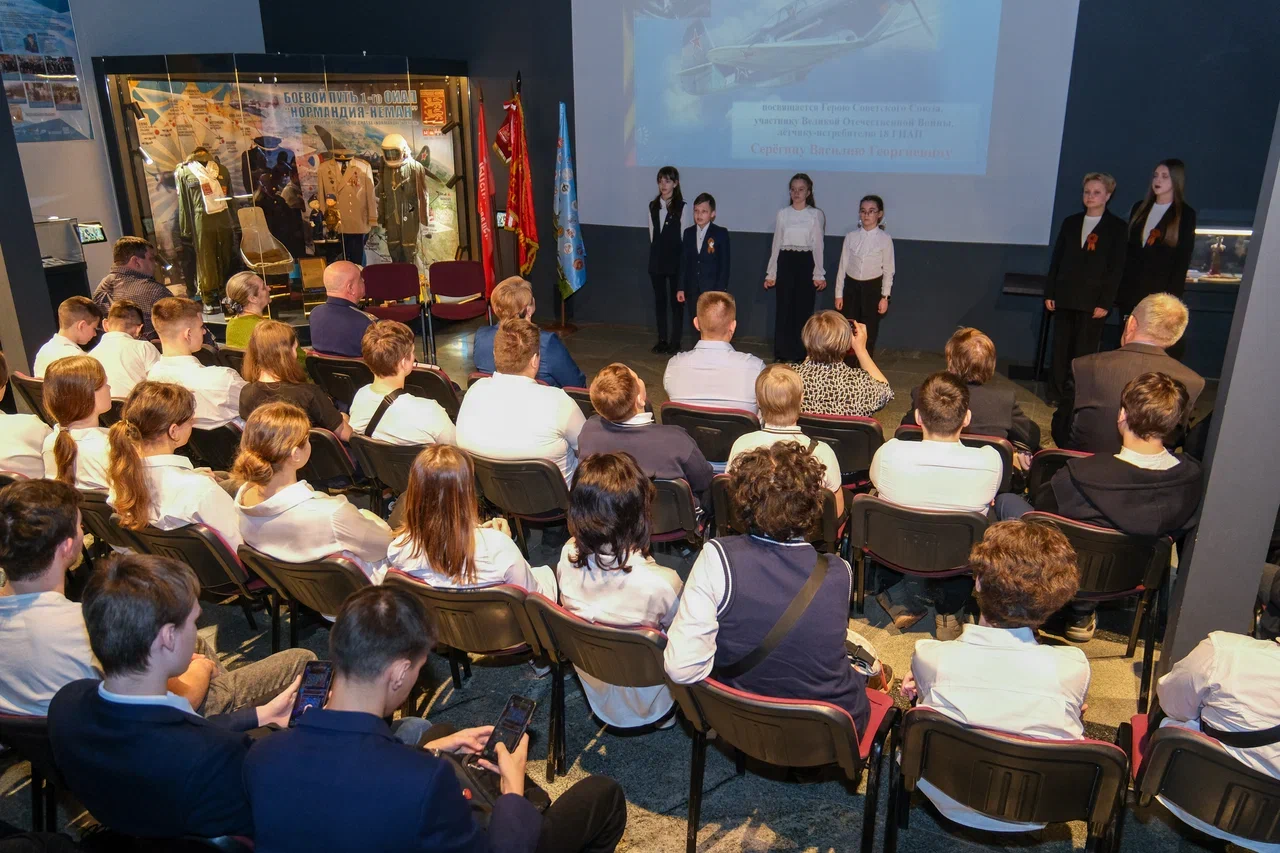 В Музее Победы на площадке выставки школьных музеев «Герои неба» состоялся урок памяти, посвященный 110-летию со дня рождения летчика полка «Нормандия — Неман», Героя Советского Союза Василия Серегина.