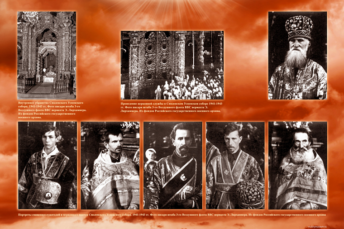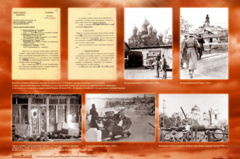 Планшетная экспозиция посвящена деятельности и роли Русской православной церкви в годы Великой Отечественной войны и ее вкладу в Победу.