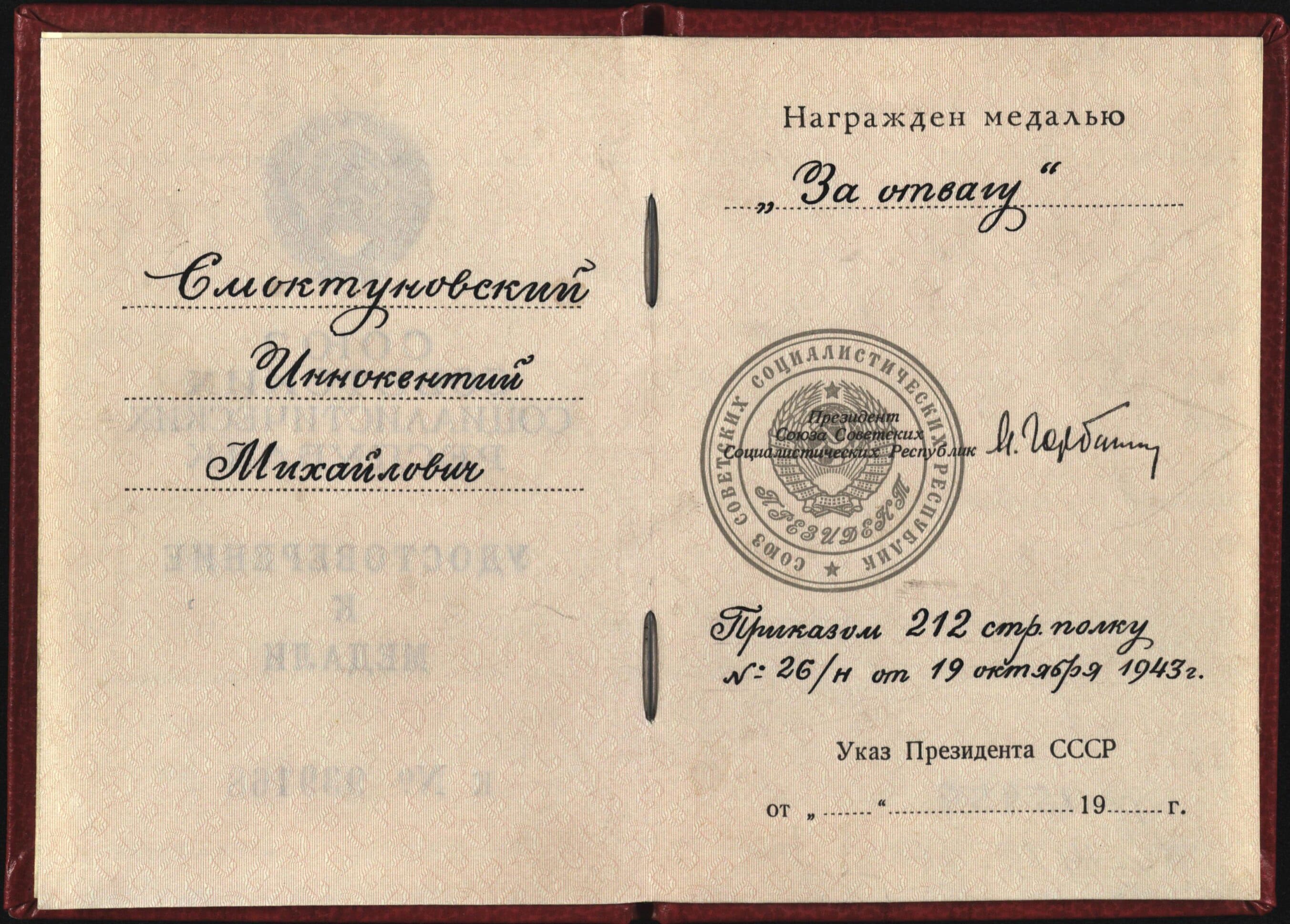 «Это две медали «За отвагу» и одно удостоверение, переданные в дар музею на Поклонной горе дочерью Иннокентия Михайловича Марией Смоктуновской. Реликвии станут экспонатами новой масштабной экспозиции «Путь к Победе», которая откроется в преддверии 9 Мая. Они войдут в интерактивный комплекс «Реликвии Победы», который является уникальной частью экспозиции и будет реализован при поддержке Президентского фонда культурных инициатив», — сообщили в Музее Победы.