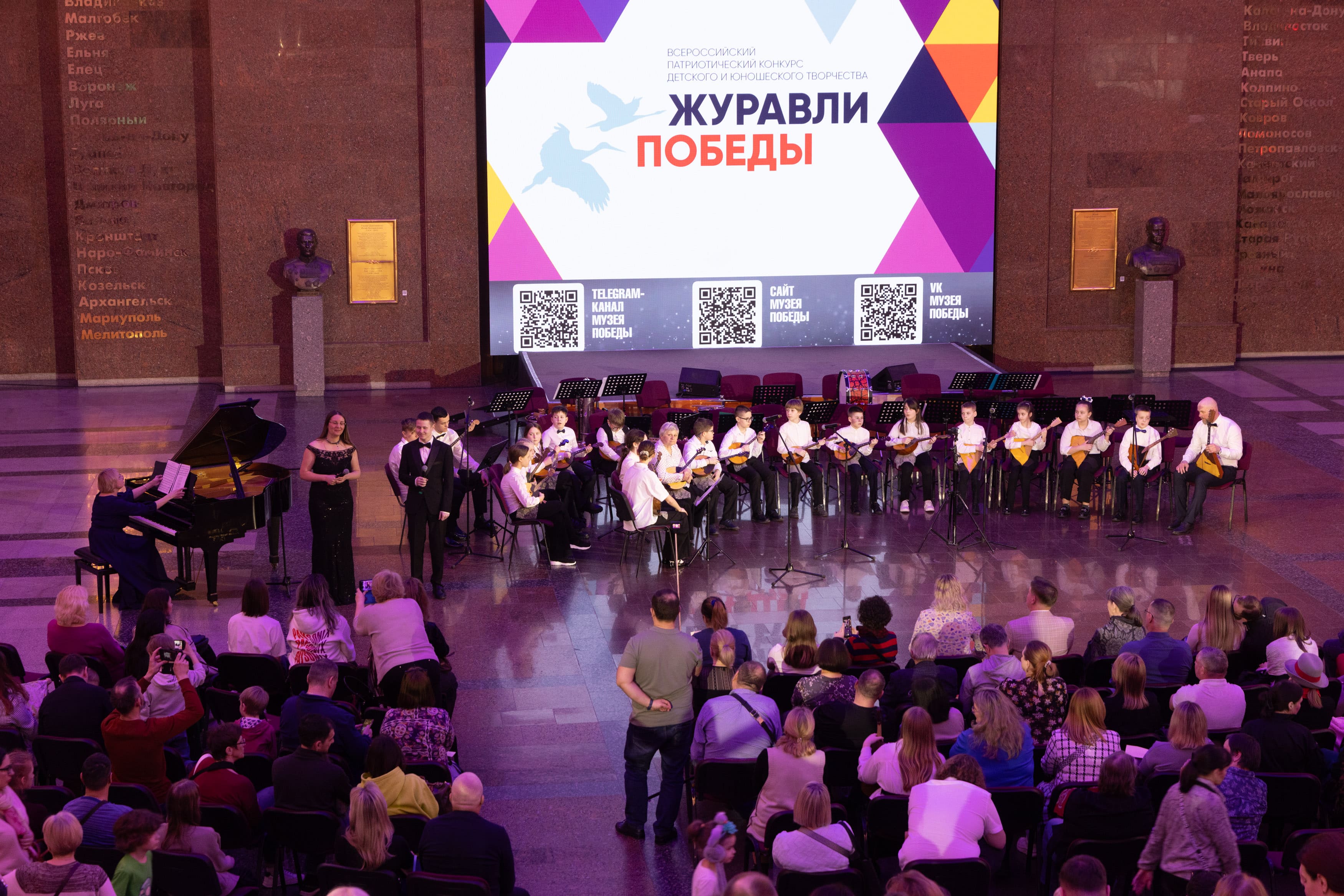 В Музее Победы состоялся концерт воспитанников детской музыкальной школы поселка Удельная Московской области. Выступление прошло в рамках Всероссийского патриотического конкурса детского и юношеского творчества «Журавли Победы».