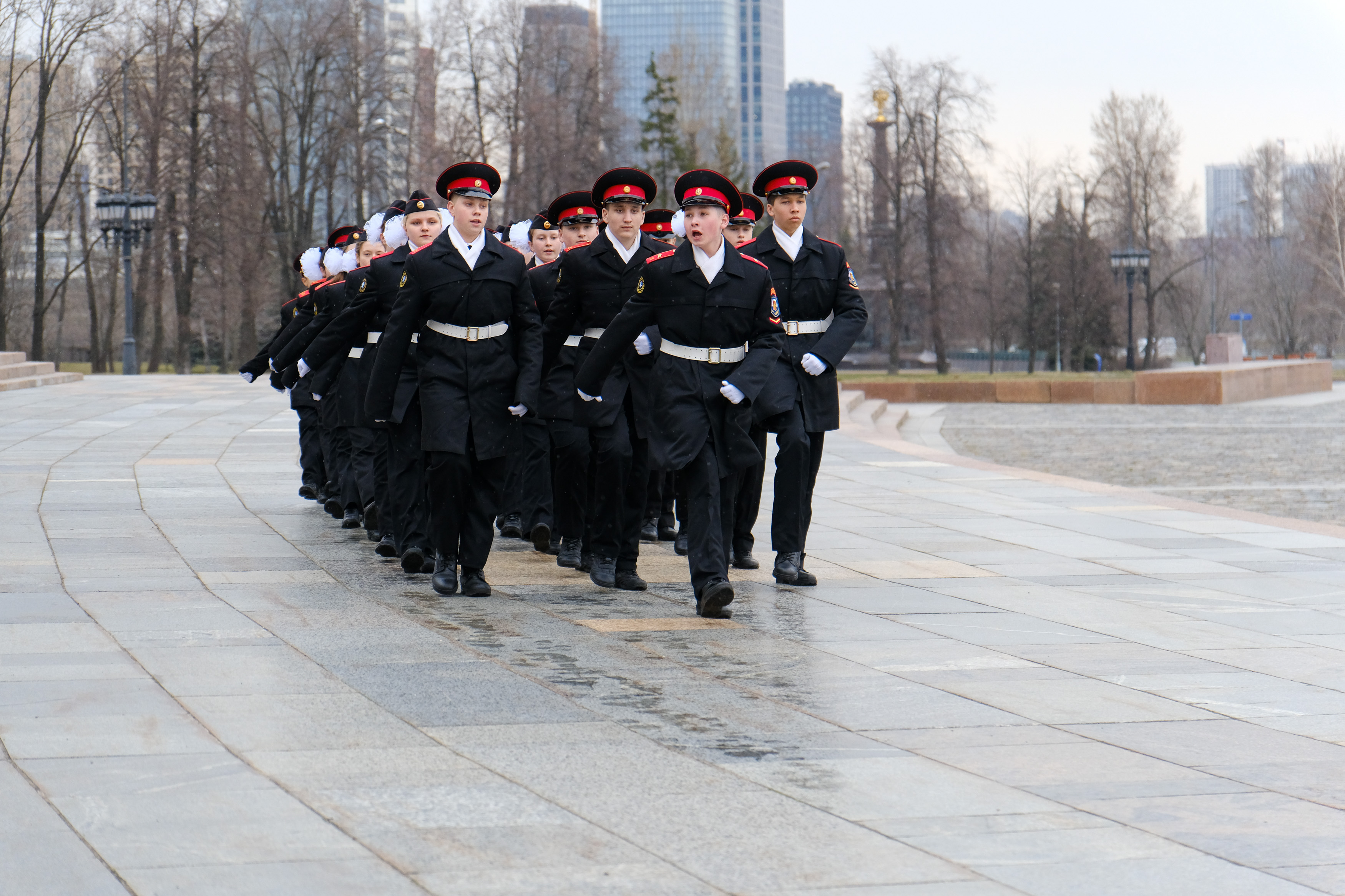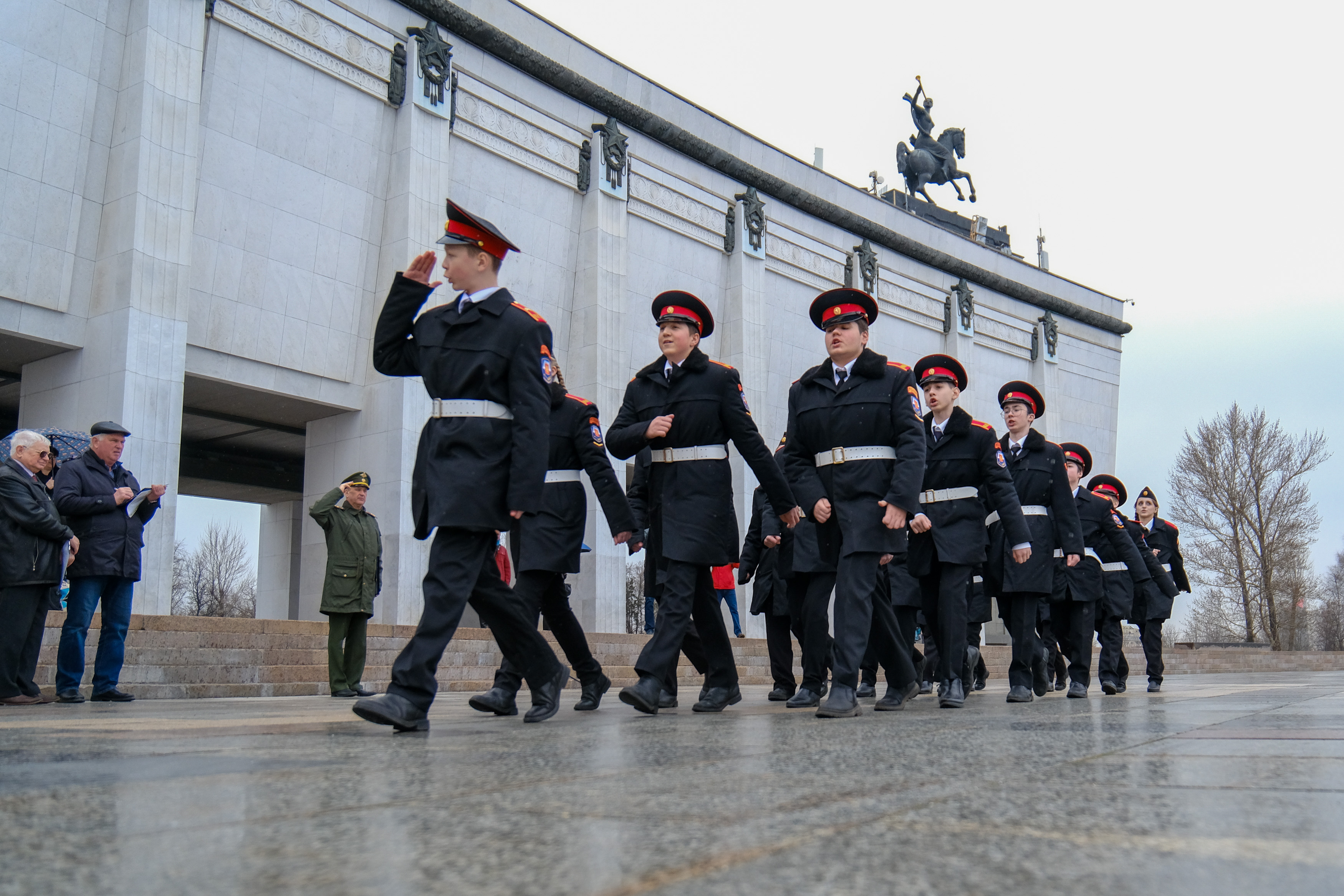 У стен Музея Победы стартовал городской конкурс «Смотр строя и песни. Марш Победителям!». Первыми участниками соревнований стали около 100 кадетов из шести московских школ.
