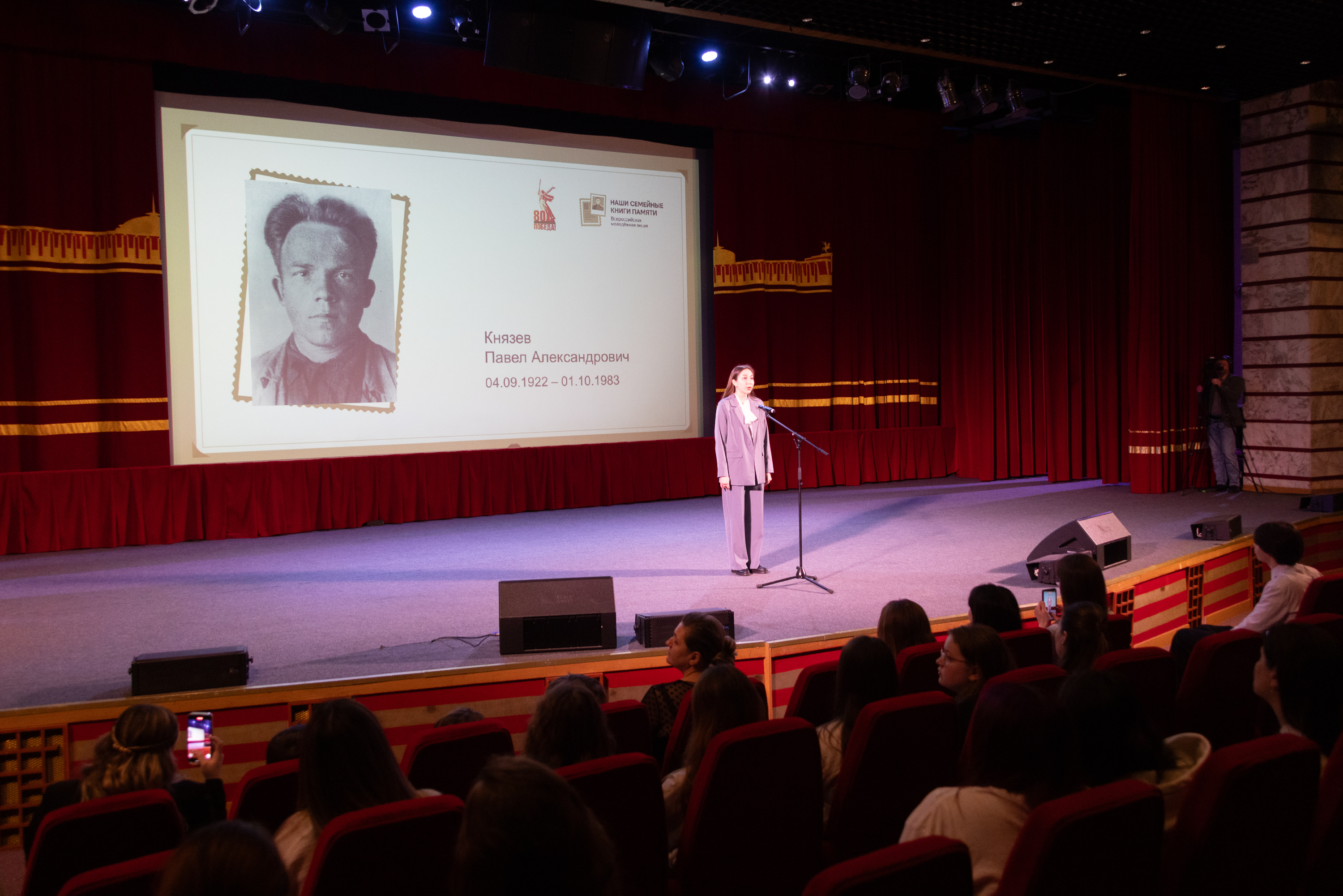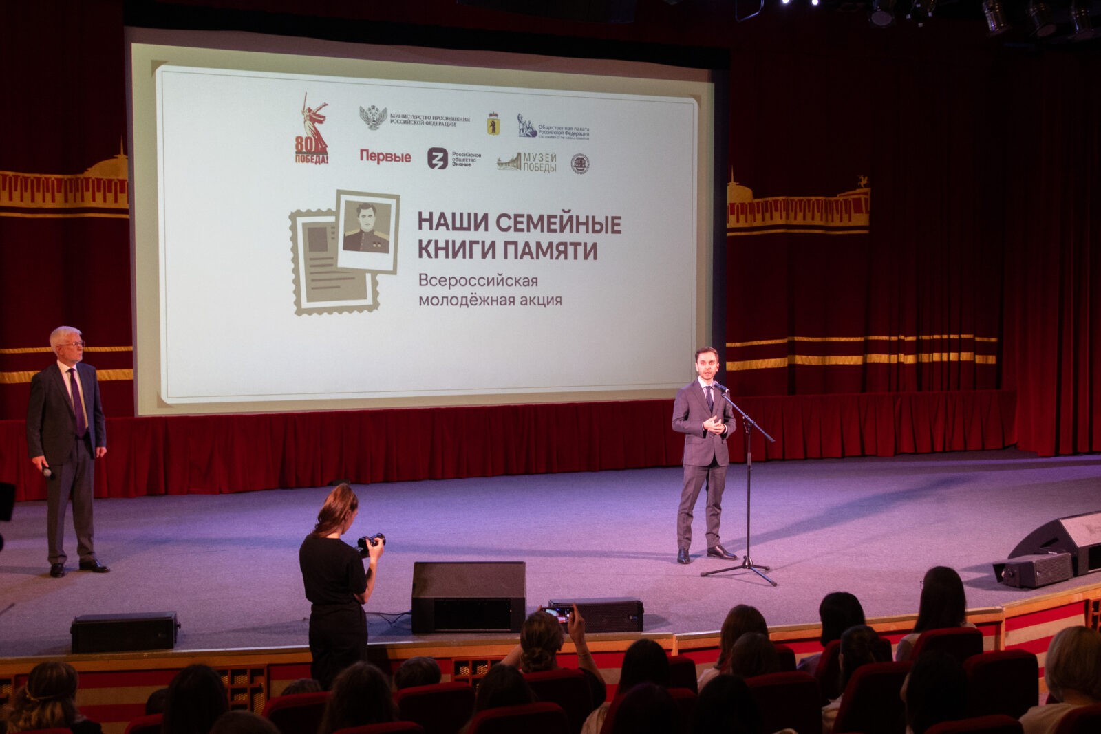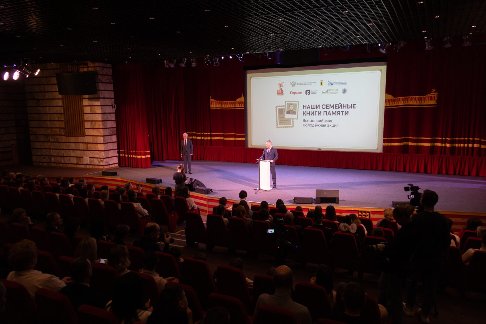 «От лица министра просвещения Российской Федерации Сергея Сергеевича Кравцова, от лица всего министерства приветствую всех собравшихся здесь. В Год защитника Отечества, в преддверии знаменательного события 80-летия Победы мы с вами собрались в месте, поистине символизирующем главный героический подвиг нашей страны и нашего народа, — в Музее Победы. В этот год в нашей стране проходят масштабные федеральные и региональные проекты, направленные на укрепление исторической памяти, памяти о подвиге нашего народа. Одним из таких стал проект «Наши семейные книги памяти». Все больше времени отделяет нас от Великой Отечественной войны, и в далеком 1945 году советский народ не просто одержал победу под Москвой. Наши деды и прадеды отстояли право на свободу, независимость и человеческое достоинство. Брестская крепость, битва под Москвой, блокада Ленинграда, Сталинградская и Польская битвы — вот далеко не полный перечень сражений Великой Отечественной войны. В наших домашних фотоальбомах, семейных архивах как величайшие реликвии хранятся фотографии фронтовиков и тружеников тыла, пронзительно трогательные письма с фронта. И рассказы об их подвиге передаются из поколения в поколение. Данный проект примечателен своей простотой и эмоциональностью. Очень важно, что он проходит, как бюрократически говорят, очно, в «человеческом» режиме», — сказал заместитель министра просвещения РФ Андрей Николаев.