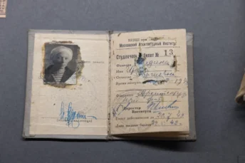 «На выставку в Музей Победы мы привезли альбом Ираиды Кадиной. Правда, в экспозиции показан один лист из альбома, на котором находится разработка проекта памятника «Воинам — защитникам Москвы в 1941 г.». Также мы привезли логарифмическую линейку Кадиной, такой в то время пользовались все инженеры и архитекторы, и книгу с повестью Кадиной, в которой она рассказывает о том, как служила в медицинской части в период Битвы за Москву. У нас на стенде представлена известная фотография Ираиды Георгиевны, на которой она в шапке с медицинским крестом и в шинели. Так вот, это шинель ее отца. В ней он служил медицинским работником во время Первой мировой войны», — рассказала Любовь Бодрова.