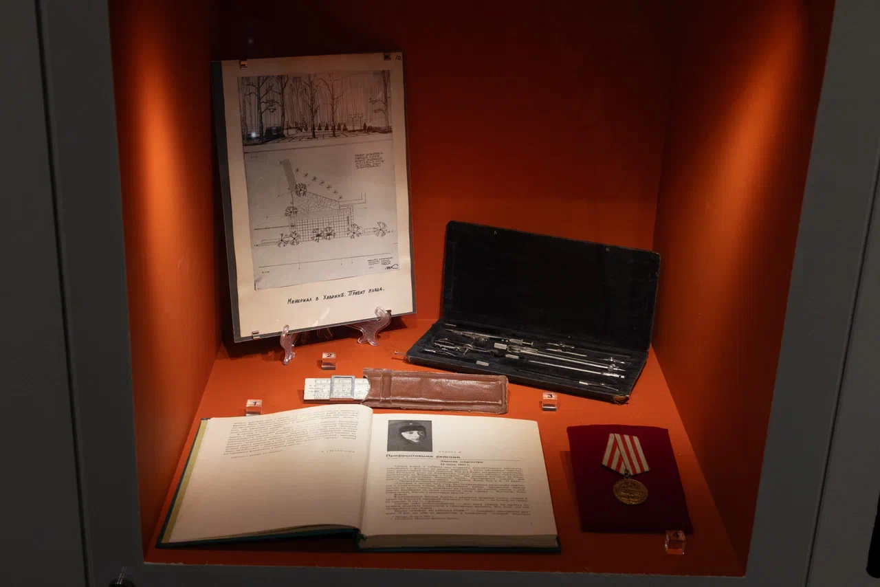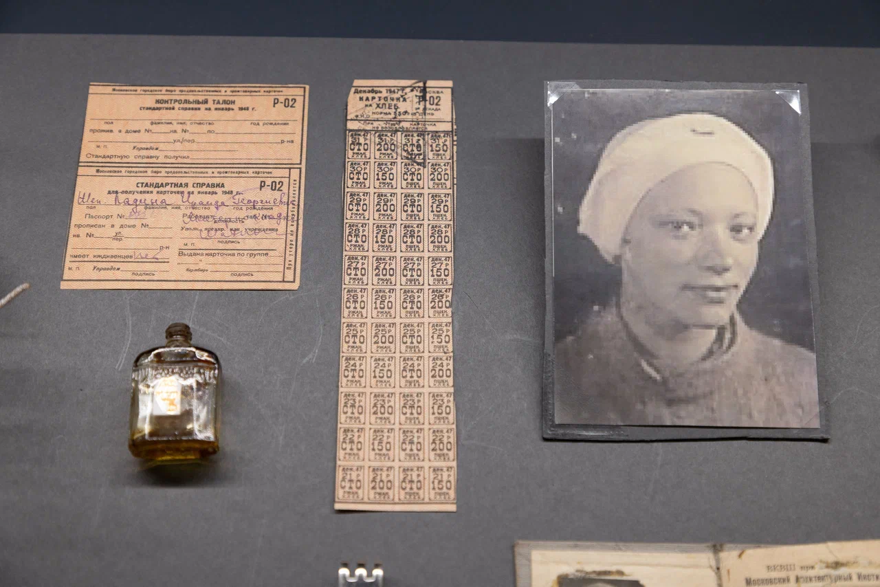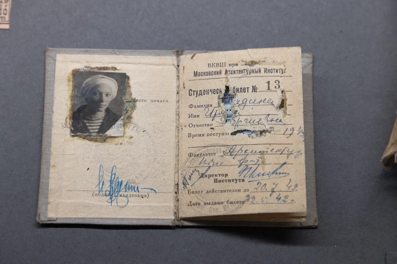 «На выставку в Музей Победы мы привезли альбом Ираиды Кадиной. Правда, в экспозиции показан один лист из альбома, на котором находится разработка проекта памятника «Воинам — защитникам Москвы в 1941 г.». Также мы привезли логарифмическую линейку Кадиной, такой в то время пользовались все инженеры и архитекторы, и книгу с повестью Кадиной, в которой она рассказывает о том, как служила в медицинской части в период Битвы за Москву. У нас на стенде представлена известная фотография Ираиды Георгиевны, на которой она в шапке с медицинским крестом и в шинели. Так вот, это шинель ее отца. В ней он служил медицинским работником во время Первой мировой войны», — рассказала Любовь Бодрова.