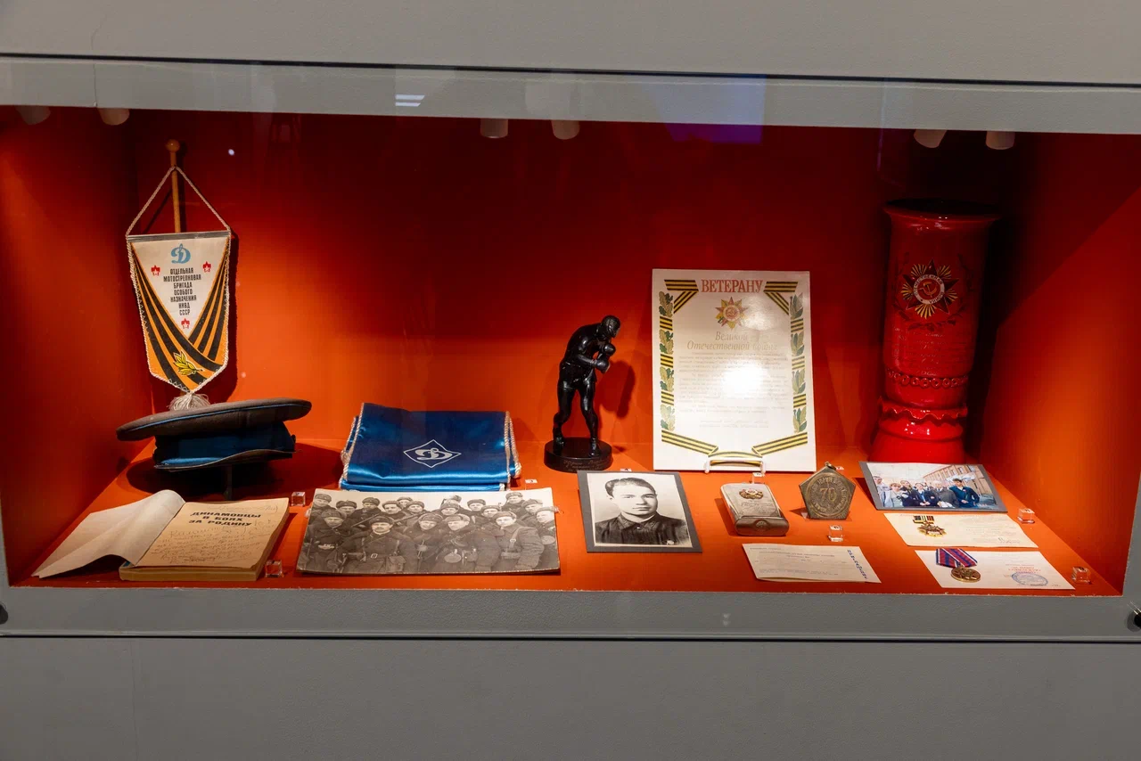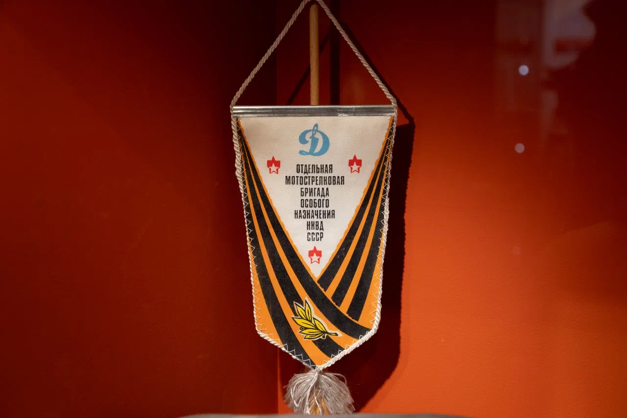 Часть выставки посвящена Отдельной мотострелковой бригаде особого назначения НКВД СССР (ОМСБОН), сформированной 27 июня 1941 года на московском стадионе «Динамо». В состав бригады вошло большое количество прославленных спортсменов. Среди представленных экспонатов — военная форма, личные вещи, награды, документы бойцов формирования Евгения Телегуева и Юрия Калашникова.