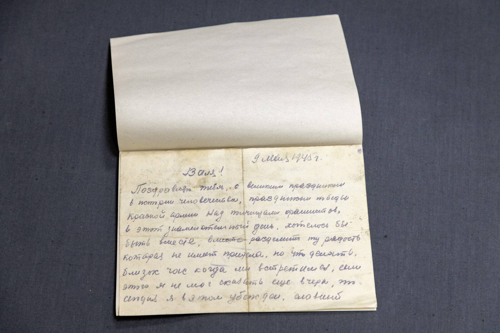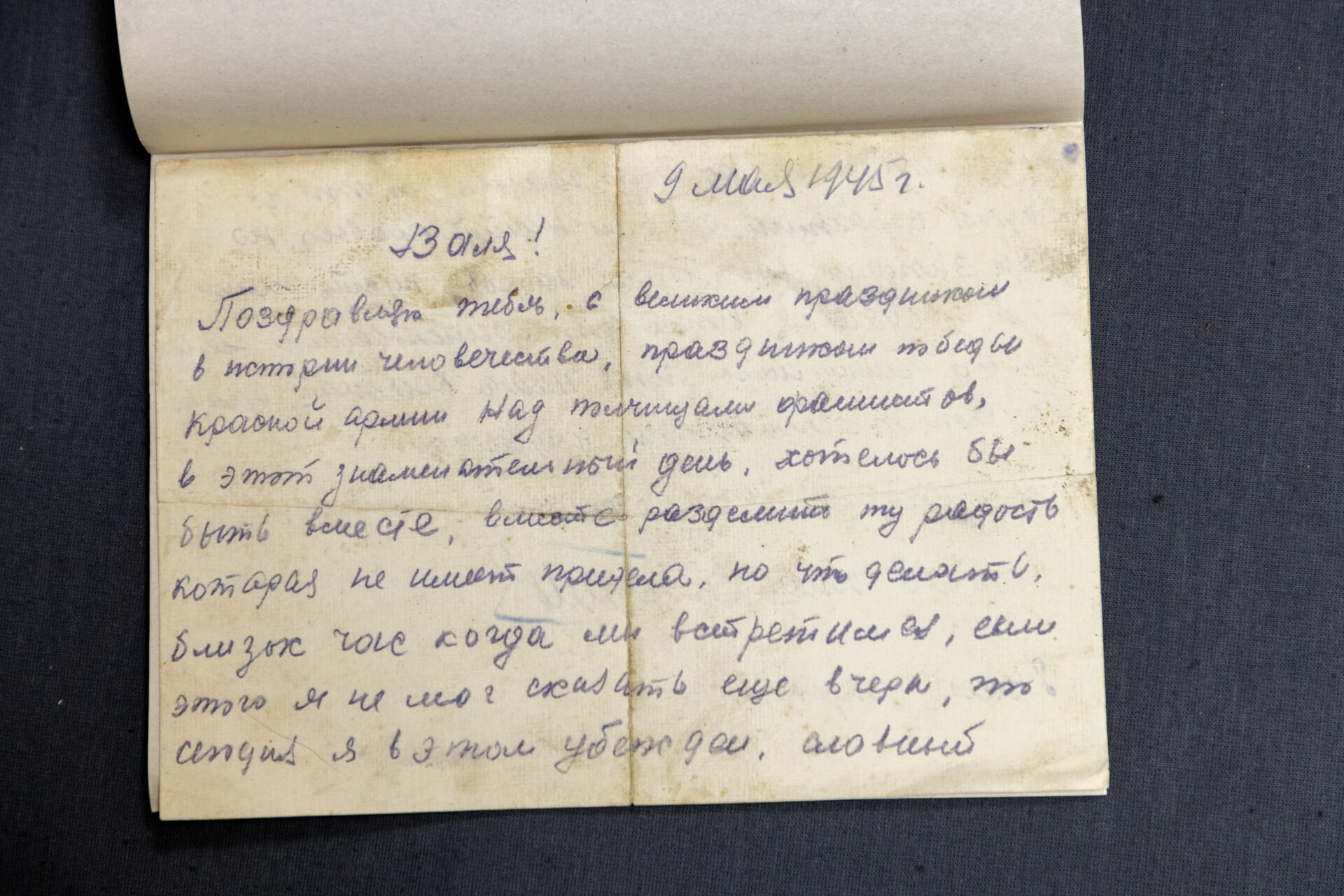 9 мая 1945 года Владимир Громов написал своей дочери Валентине письмо с поздравлениями по случаю окончания войны: