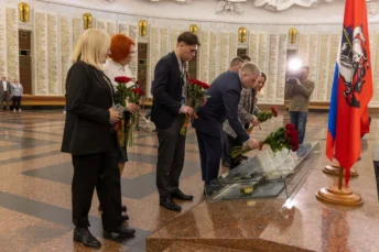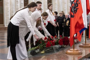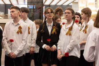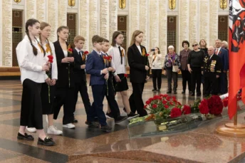 В Музее Победы дали старт традиционной акции «Мы помним». Ежедневно в преддверии 80-й годовщины Дня Победы участники мероприятий и гости музея будут возлагать цветы к скульптуре Солдата-Победителя в Зале Славы в память о героях Великой Отечественной войны.