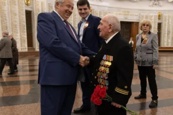 «В дни подготовки к празднованию 80-й годовщины Победы в Зале Славы Музея Победы проводится акция «Мы помним». Это центральный зал музея. Здесь на 72 мраморных досках, установленных по периметру, увековечены имена почти 12 тысяч Героев Советского Союза и Героев Российской Федерации», — рассказал он.
