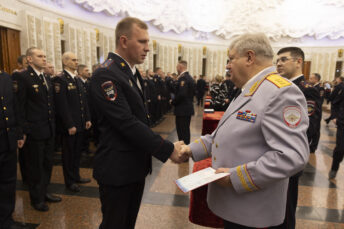 - Владимир Кубышко вручил дипломы слушателям факультета заочного обучения Московского университета МВД России имени В. Я. Кикотя. Фото: пресс-служба Музея Победы