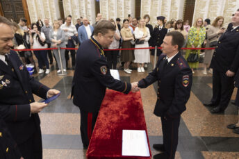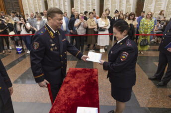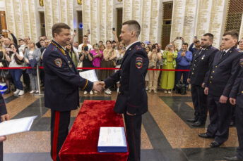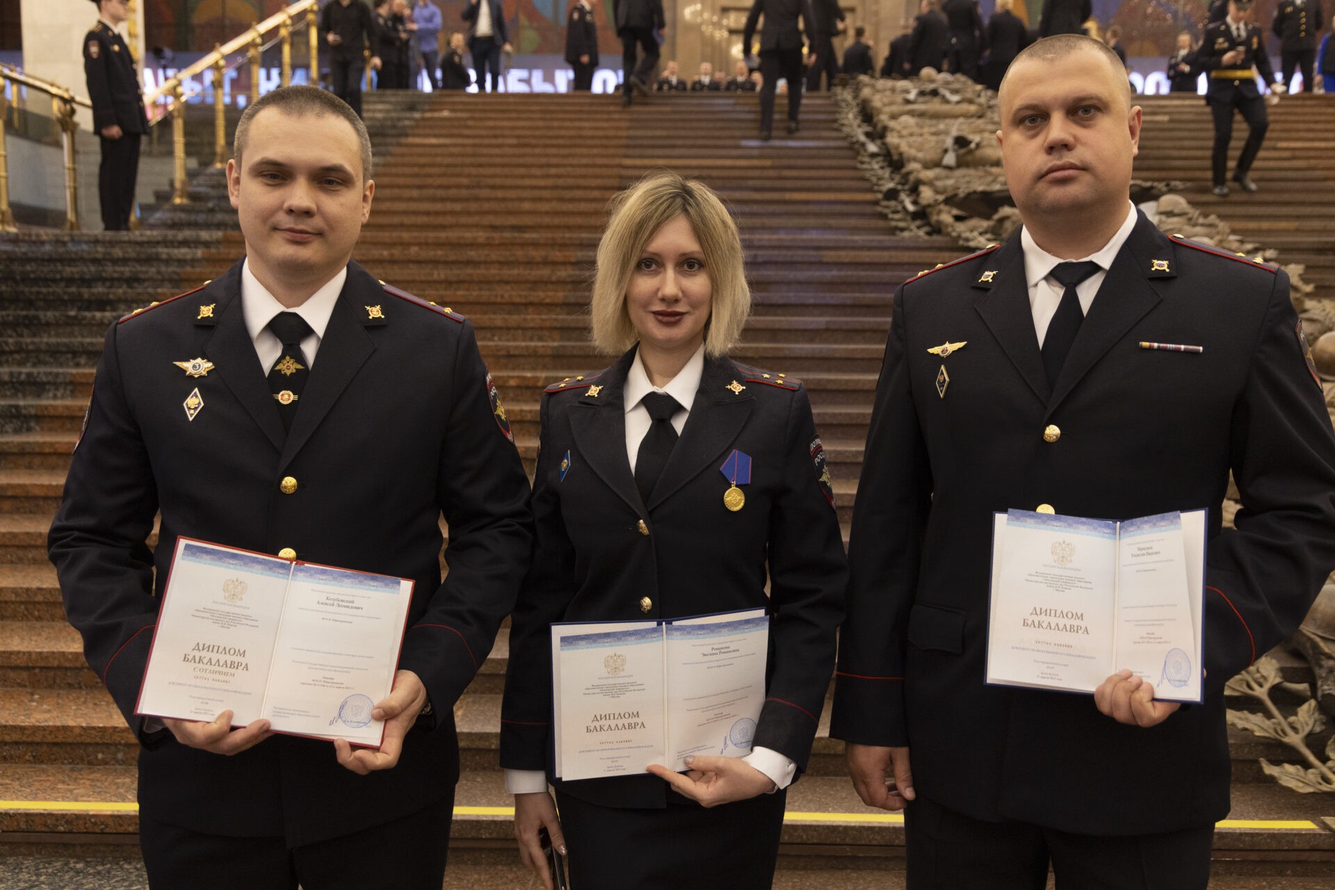 Выпускники факультета заочного обучения Московского университета МВД России имени В. Я. Кикотя получили дипломы на торжественной церемонии в Зале Славы Музея Победы.