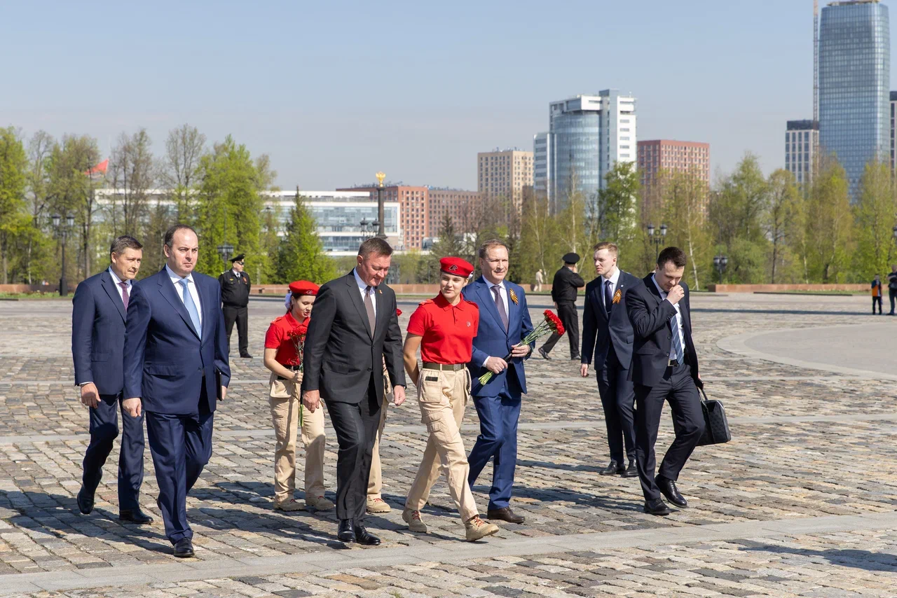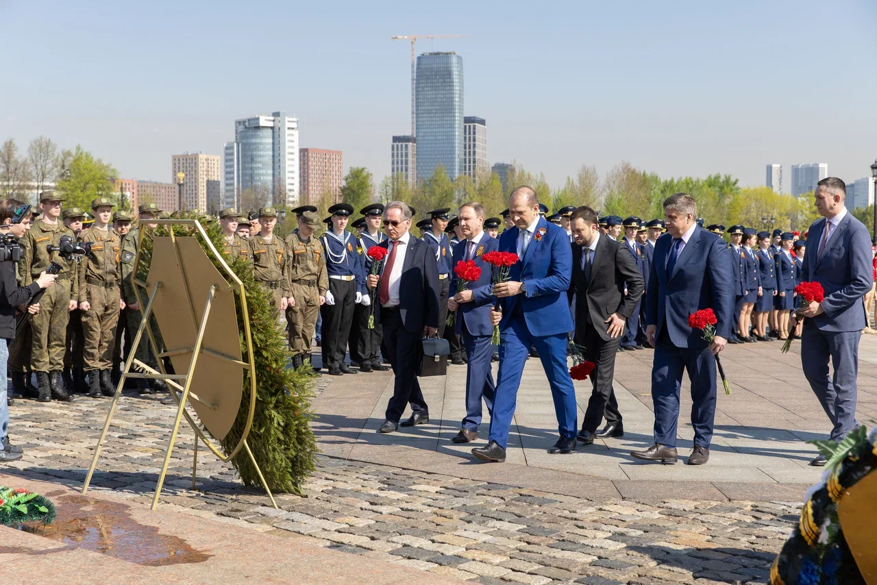 Также делегация Министерства транспорта России совместно с руководством Музея Победы и представителями Российского общества историков транспорта возложили цветы к Вечному огню на площади около музея на Поклонной горе.